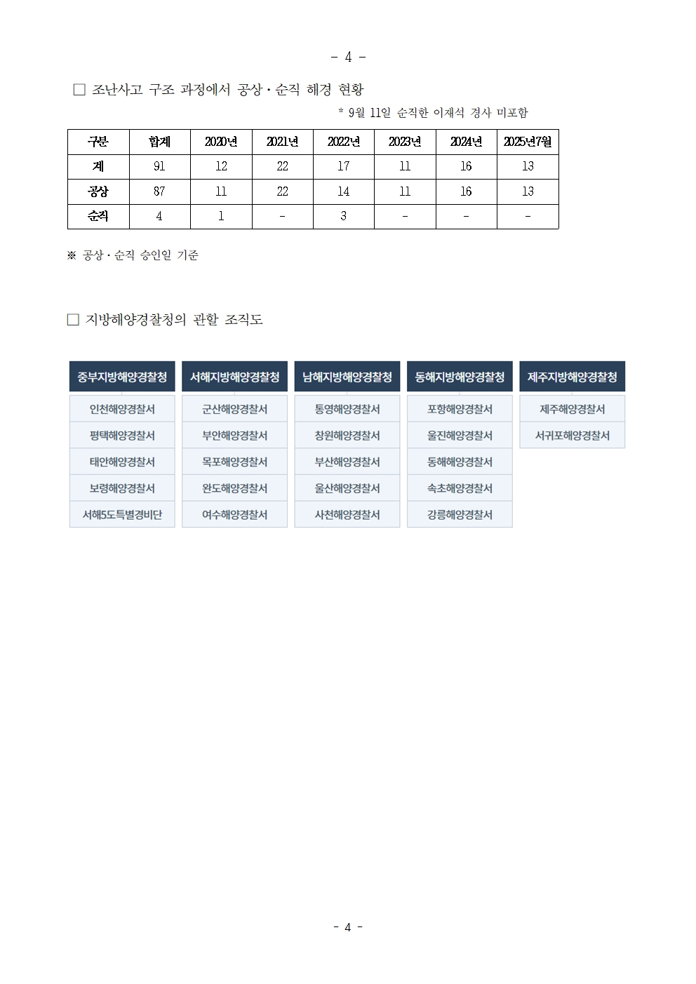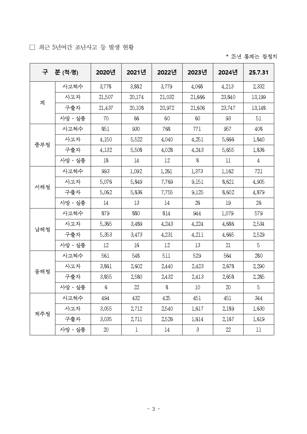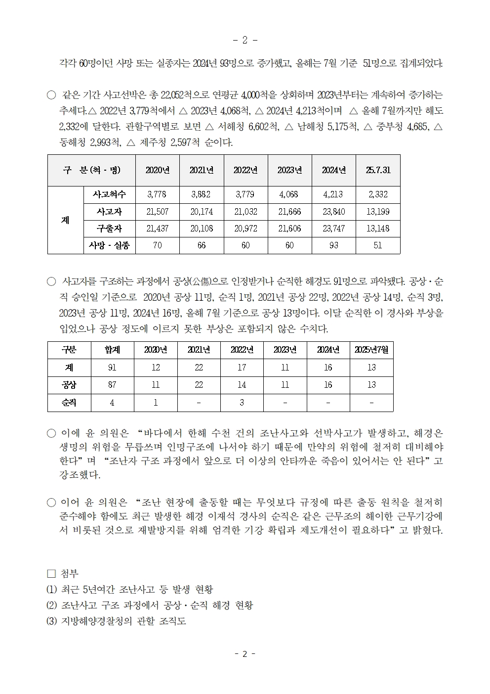 [윤준병 의원 국정감사 보도자료] 윤준병 의원, 해경 조난사고자는 지난 5년여 12만명 연평균 2만명 넘어