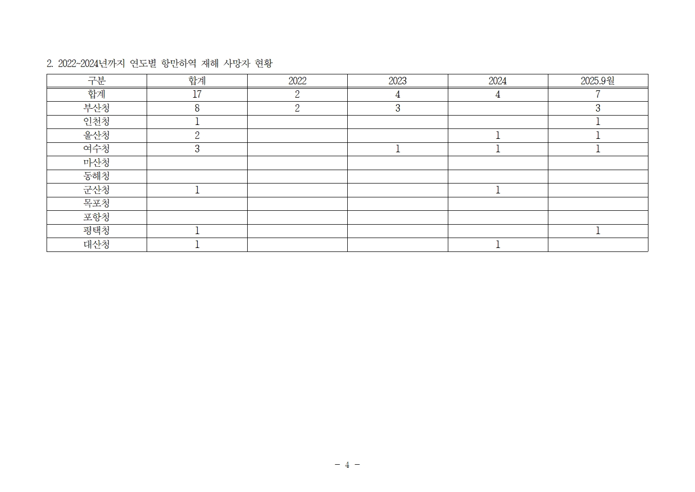 [윤준병 의원 국정감사 보도자료] 항만하역장에서 노동하다 다쳐도, 항만하역 재해통계에는 없는 노동자