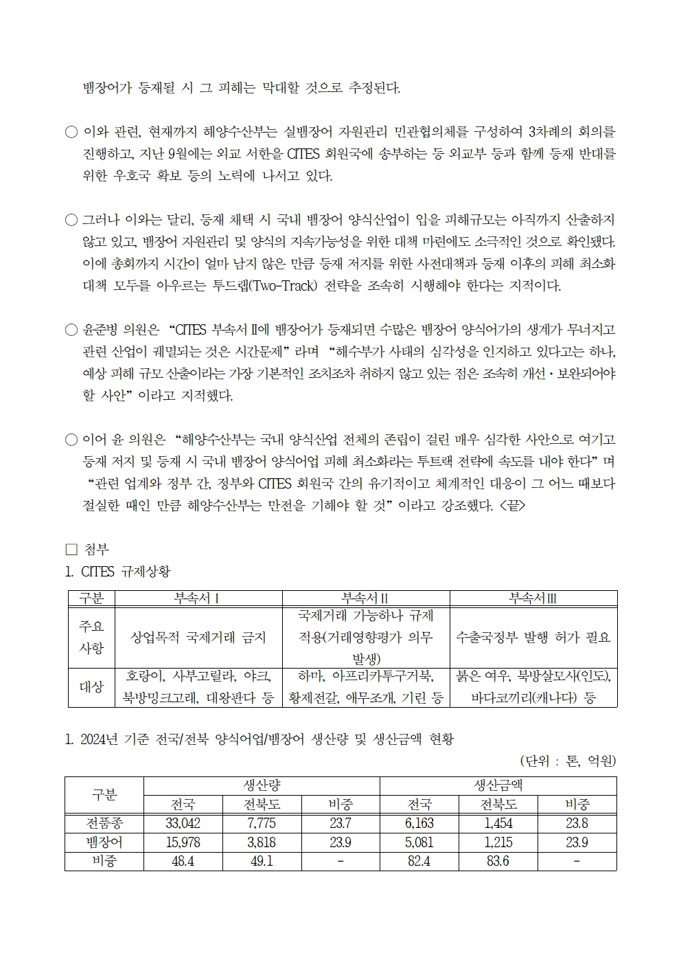 251023 [윤준병 의원 국정감사 보도자료] 11월 말 CITES 당사국총회 표결 따라 실뱀장어 국제거래 제한여부 결정.hwp