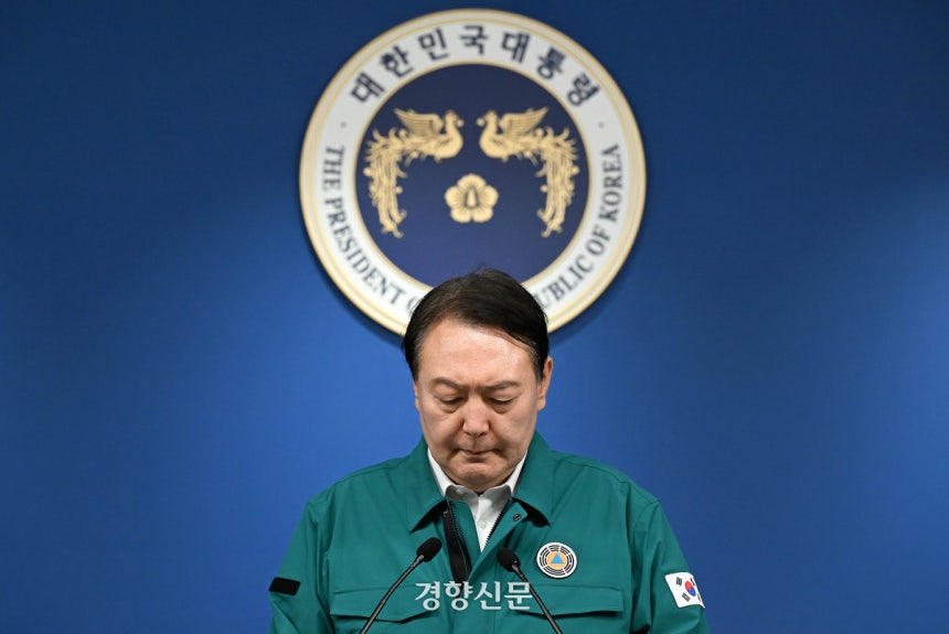 2022년 10월30일 윤석열 당시 대통령이 용산 대통령실에서 이태원 참사 관련 대국민 담화를 발표하고 있다. 대통령실사진기자단