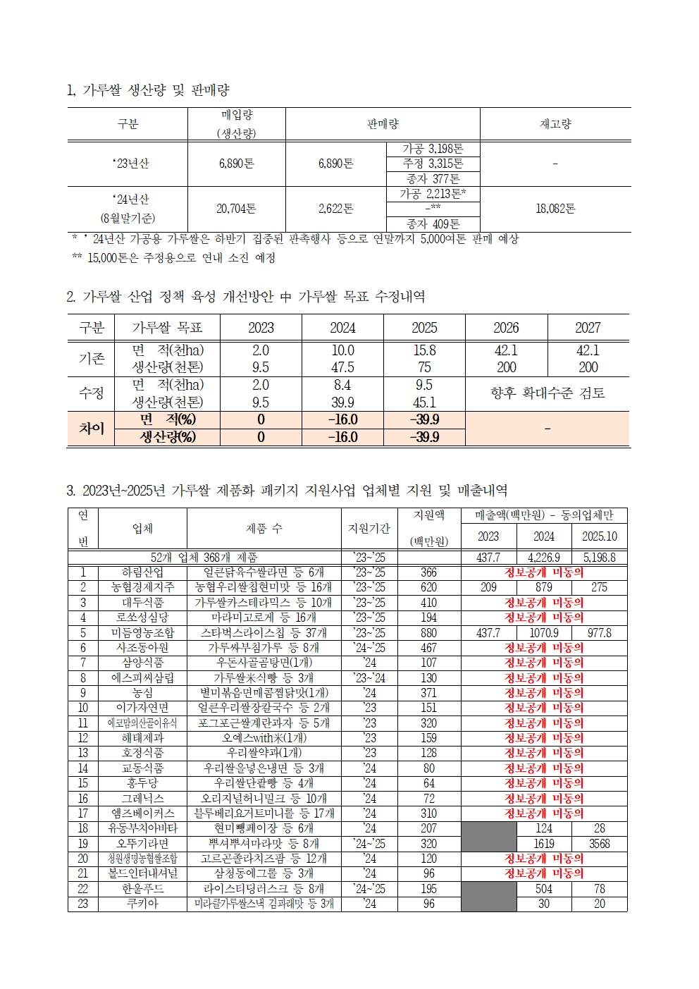 [윤준병 의원 국정감사 보도자료] '신이 내린 선물'이라던 가루쌀, 추진 2년 만에 정책목표 40% 하향조정!