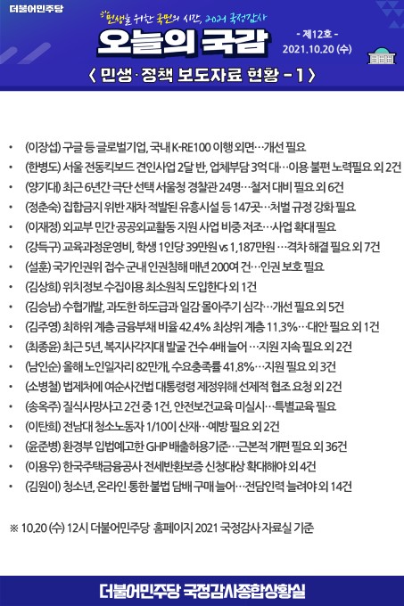 [2021 국정감사] 오늘의 국감 제12호