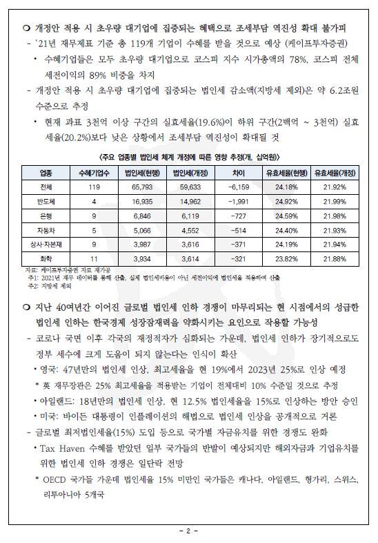 [정책브리핑] 윤석열 정부의 시대착오적 대기업 감세