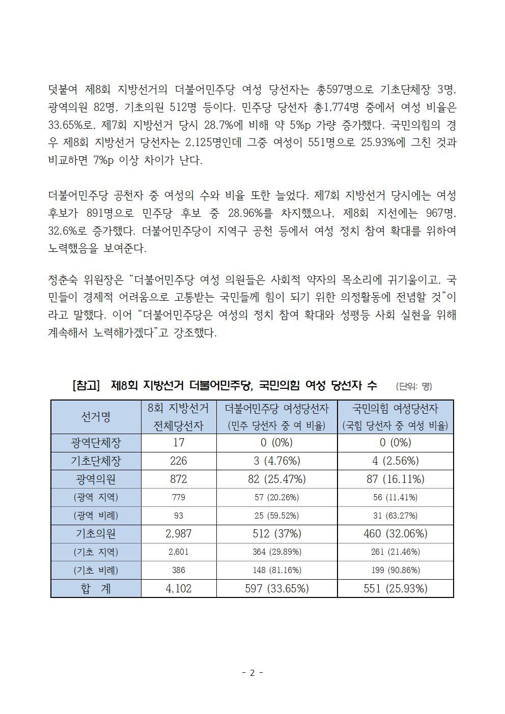 [보도자료] 더불어민주당 전국여성위원회, '6.1지방선거 여성 당선자 워크숍' 6월 26일 개최