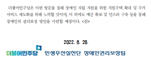 220628_보도자료_지역사회에서_모두_함께,_더불어민주당_장애인이_지역사회에서_살아갈_수_있는_환경을_만들어나가겠습니다_(1).hwp