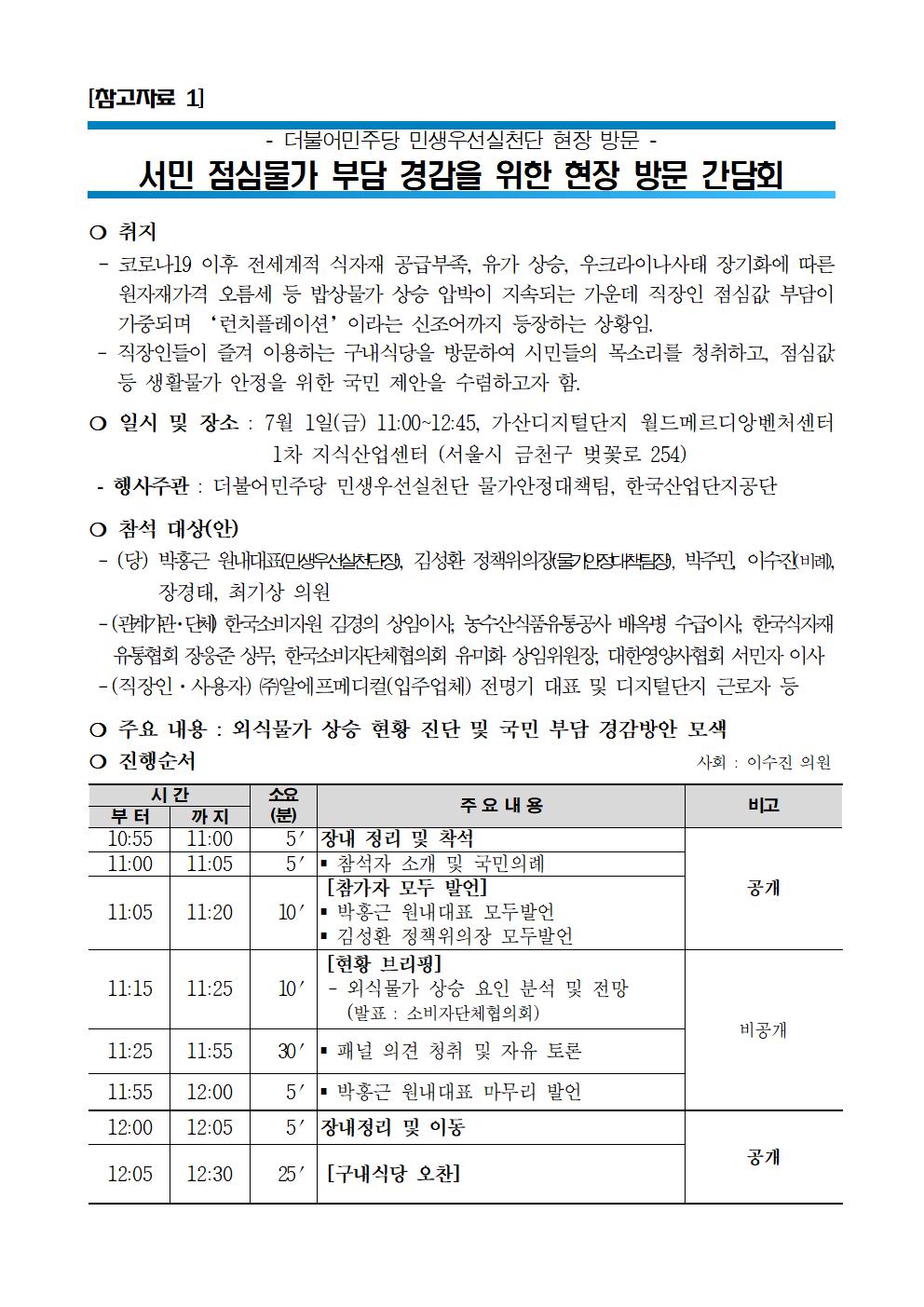[보도자료] 더불어민주당 민생우선실천단 물가안정대책팀 서민 점심물가 부담 경감 현장 방문 간담회_밥값 지원법으로 확실히 지원하겠습니다