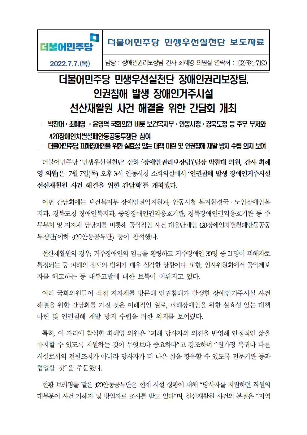 220707_더불어민주당_민생우선실천단_장애인권리보장팀_안동시청간담회개최_보도자료.hwp
