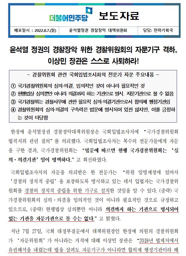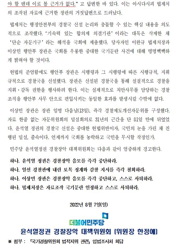 220807_(보도자료)_윤정권의_경찰장악_위한_경찰위원회의_자문기구_격하_규탄_보도자료.hwp