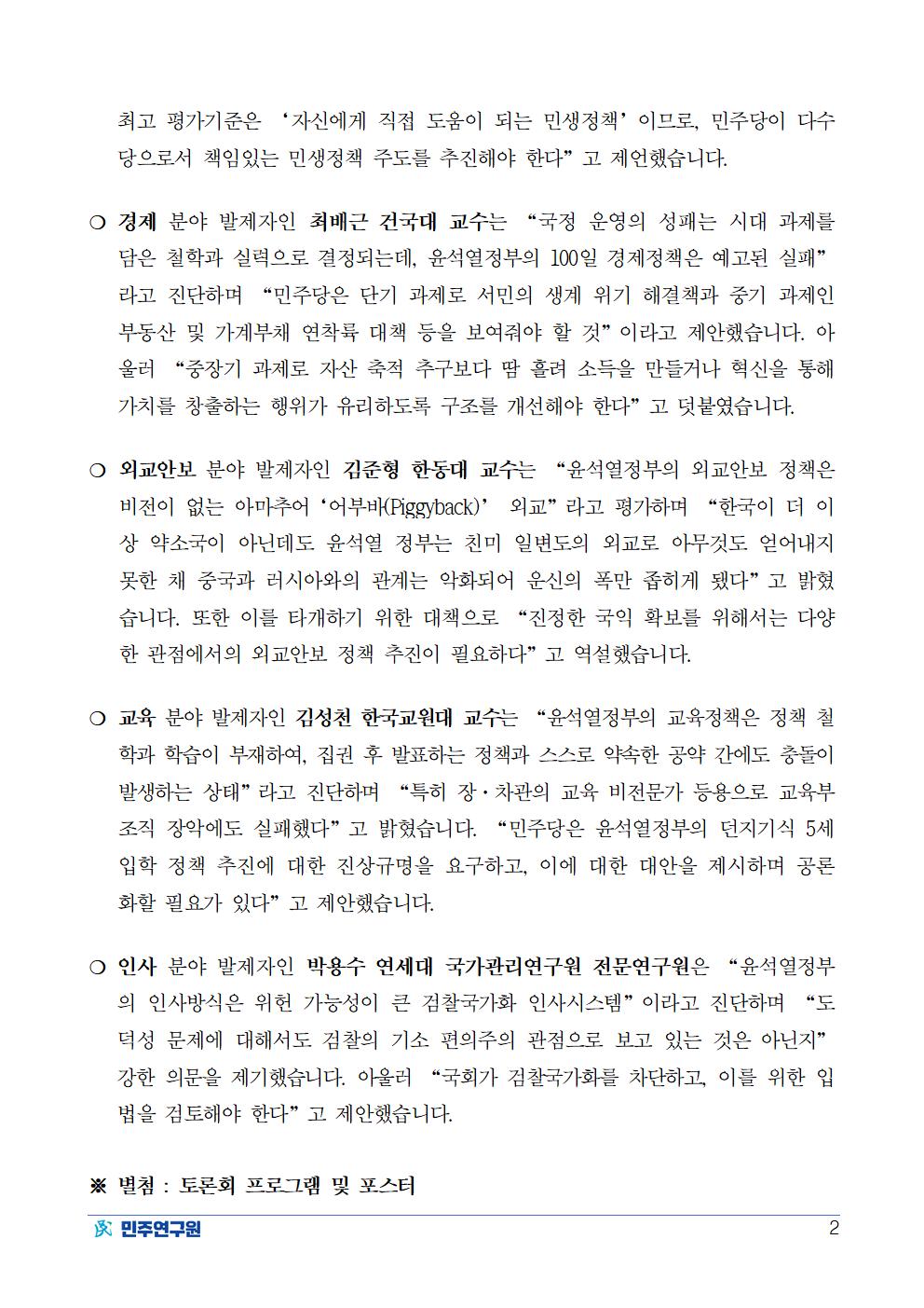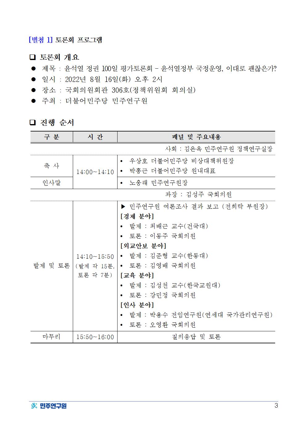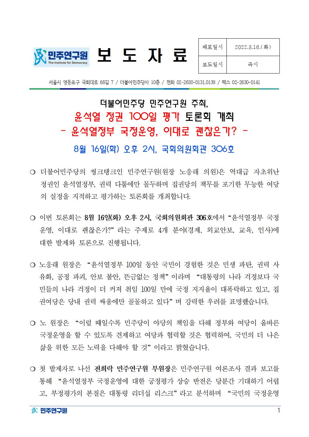 220816_보도자료_민주연구원,_윤석열_정권_100일_평가_토론회.pdf