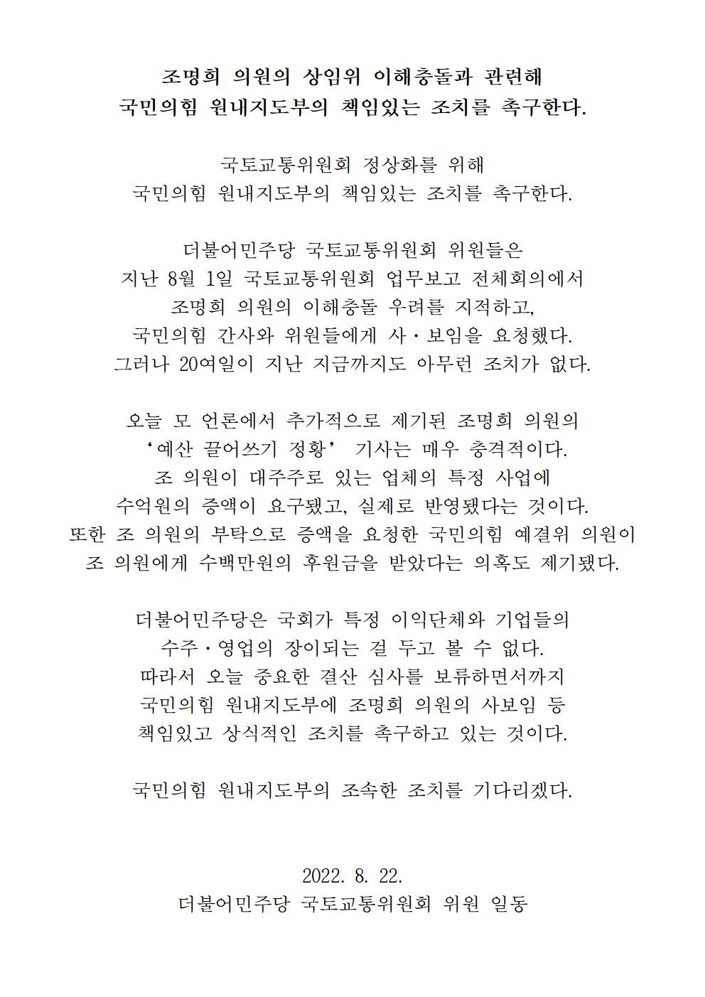220822_조명희_의원_상임위_이해충돌_관련_더불어민주당_국토위_위원_성명서.pdf