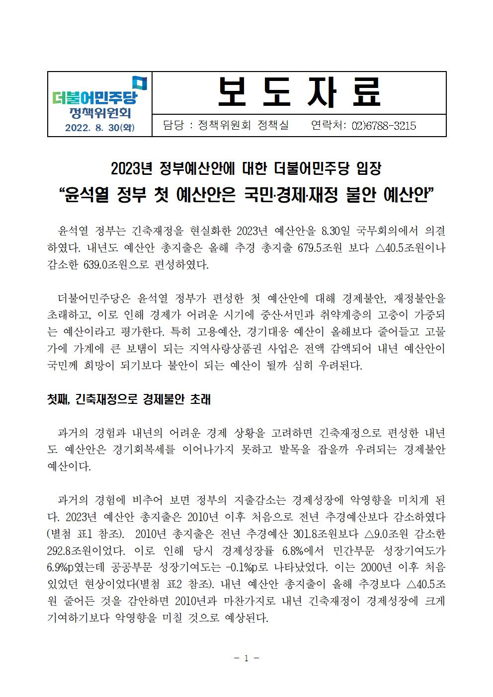 220830_민주당_23예산안_평가_보도자료_최종.pdf