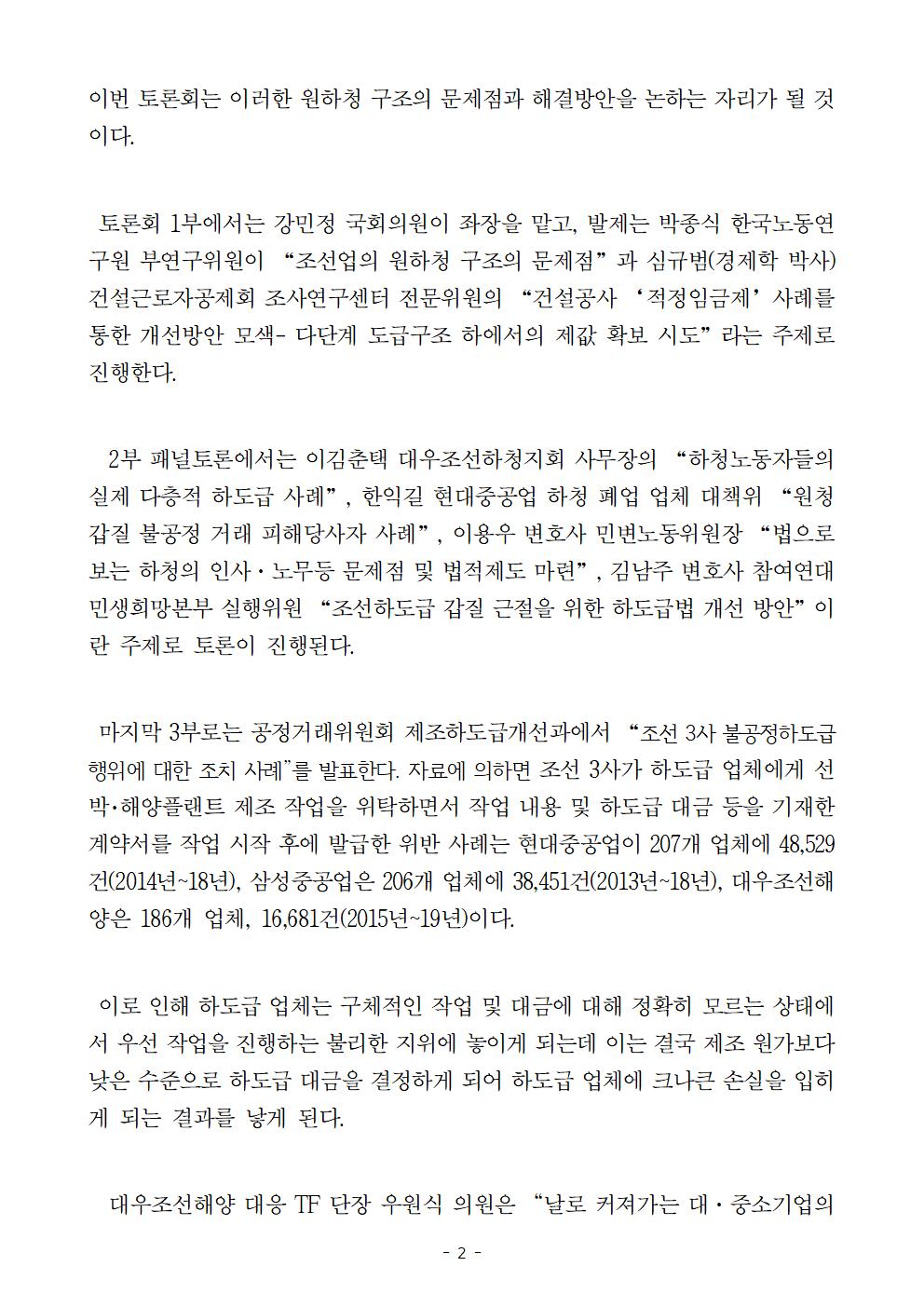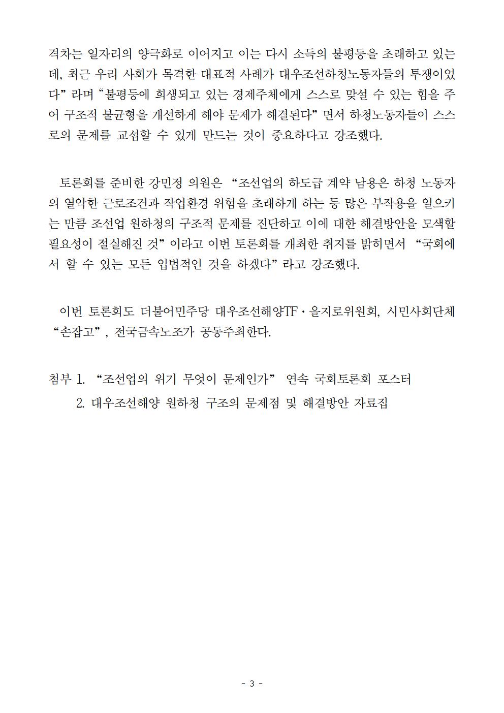 [보도자료] 더불어민주당 을지로위원회, "조선업의 위기, 무엇이 문제인가" 제3차 국회 연속토론회 개최