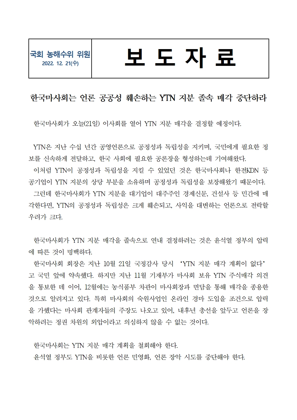 221221_국회_농해수위_위원_보도자료(마사회_YTN지분매각_이사회개최).pdf