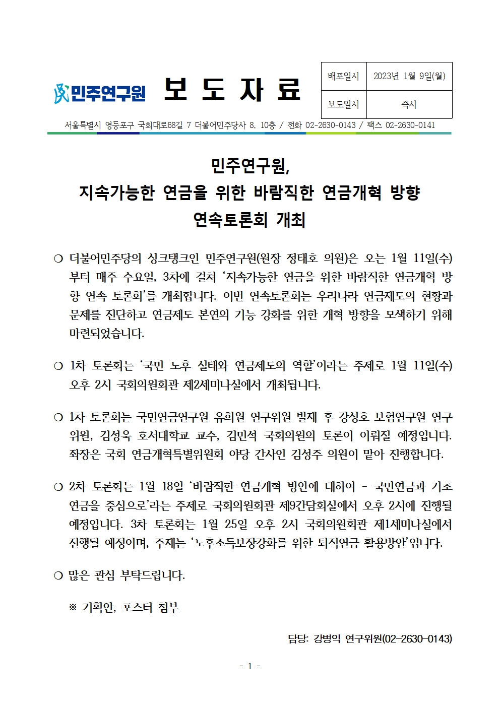 230109_민주연구원_보도자료_지속가능한_연금을_위한_바람직한_연금개혁_방향_연속토론회.pdf