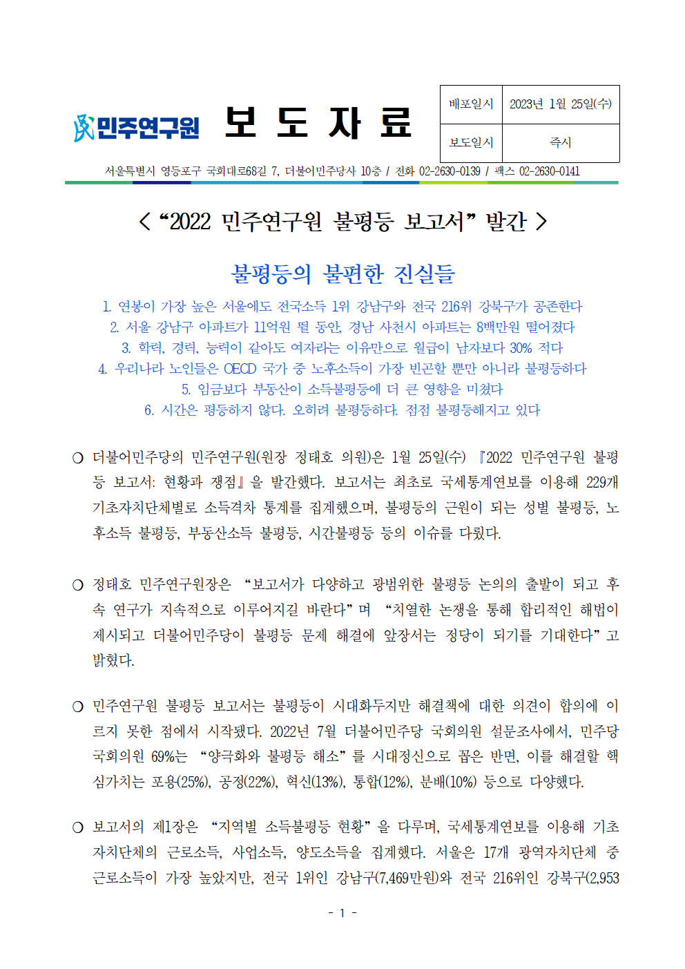 230125_민주연구원_보도자료_불평등보고서_출간_최종.hwp