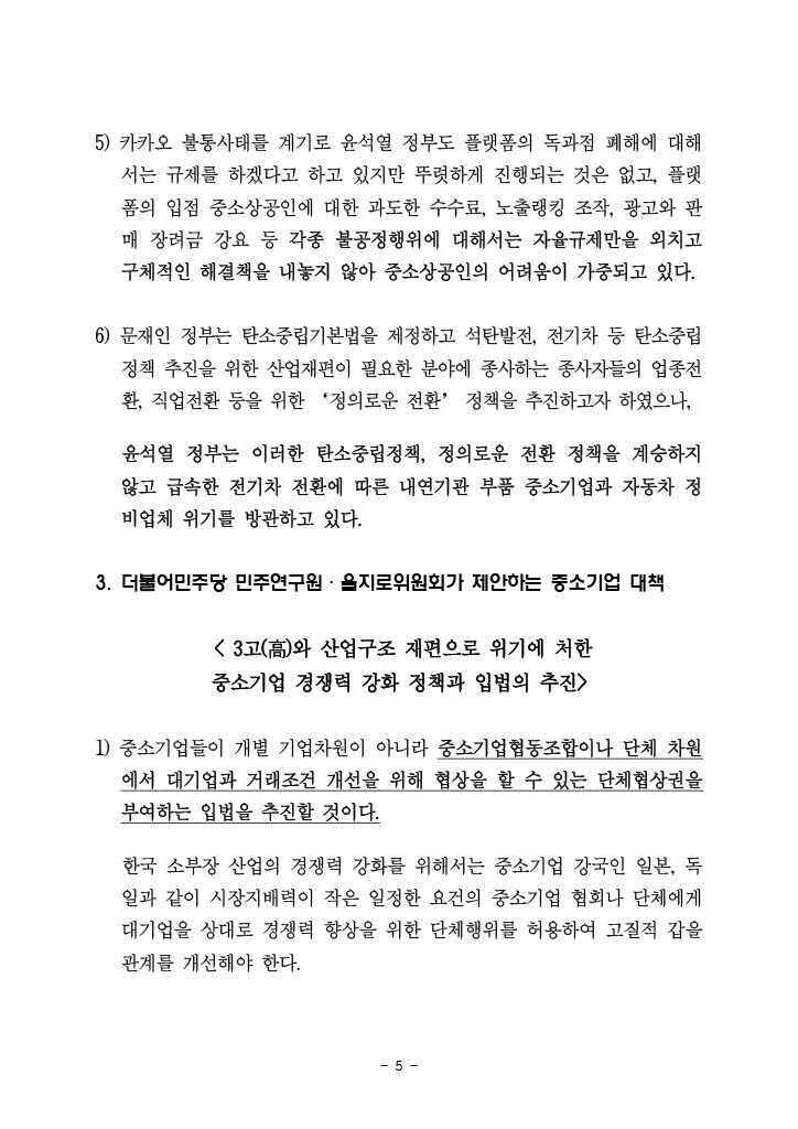 [보도자료] 더불어민주당 민주연구원·을지로위원회, 민생회복 프로젝트 연속토론회 결과 브리핑 (4차 중소기업 분야)