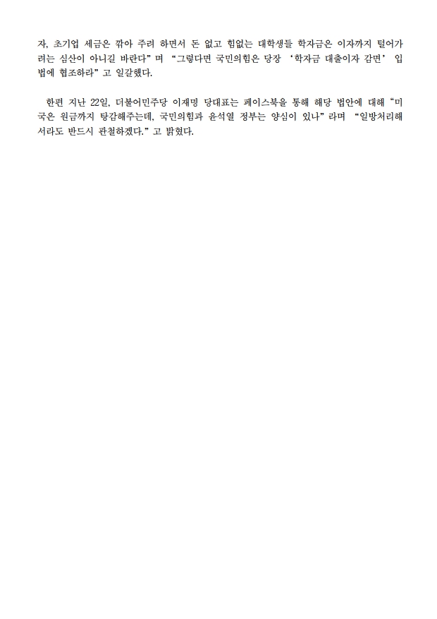 [보도자료] 더불어민주당 전국대학생위원회, “학자금 대출이자 감면 입법 즉각 완수하라”