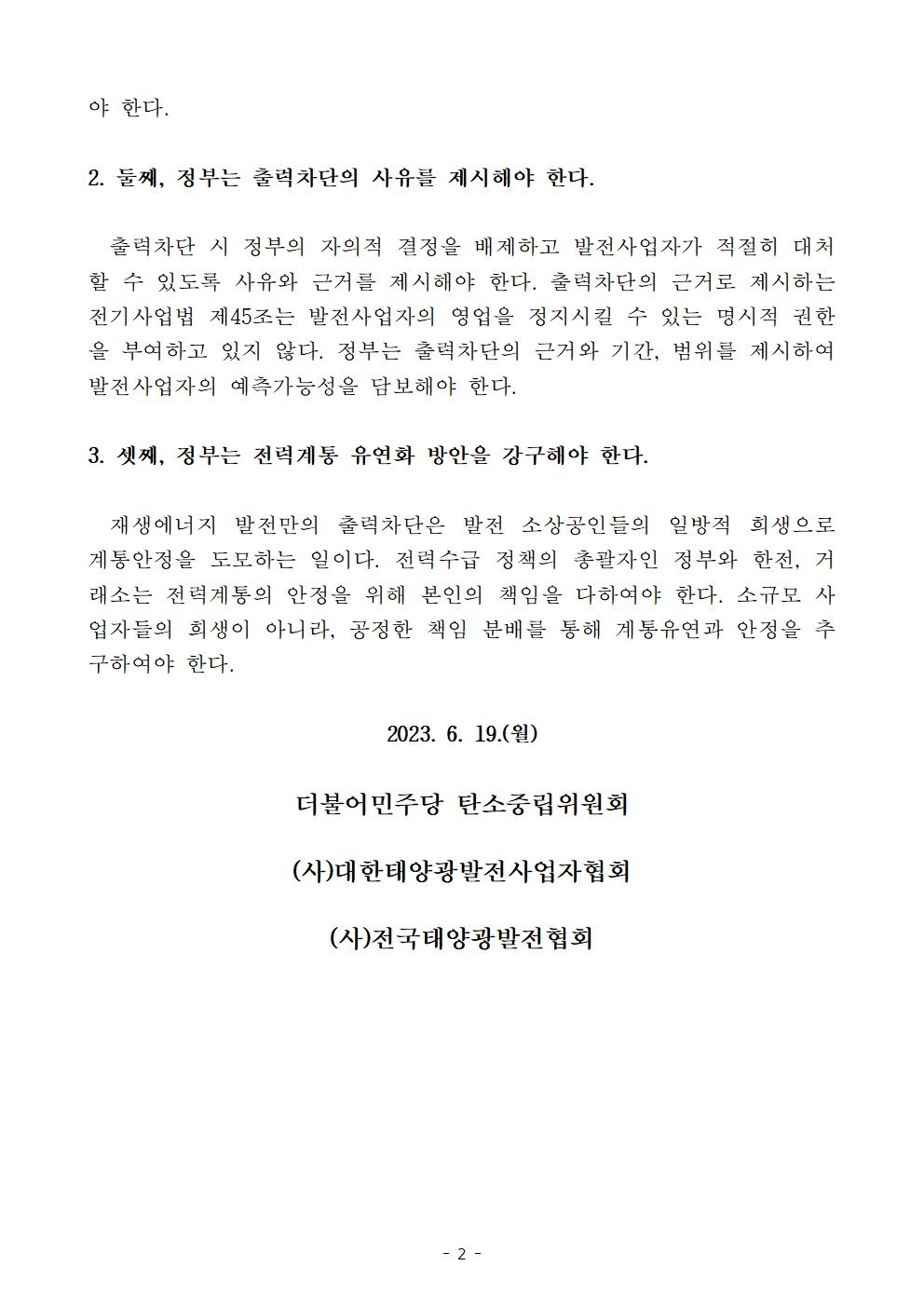 [기자회견문] 더불어민주당 탄소중립위원회, 정부는 출력차단의 기준과 근거를 명확히 하고 적법한 절차를 준수하라! 정부는 전력계통 안정을 확보하기 위한 본인의 책임을 다하라!
