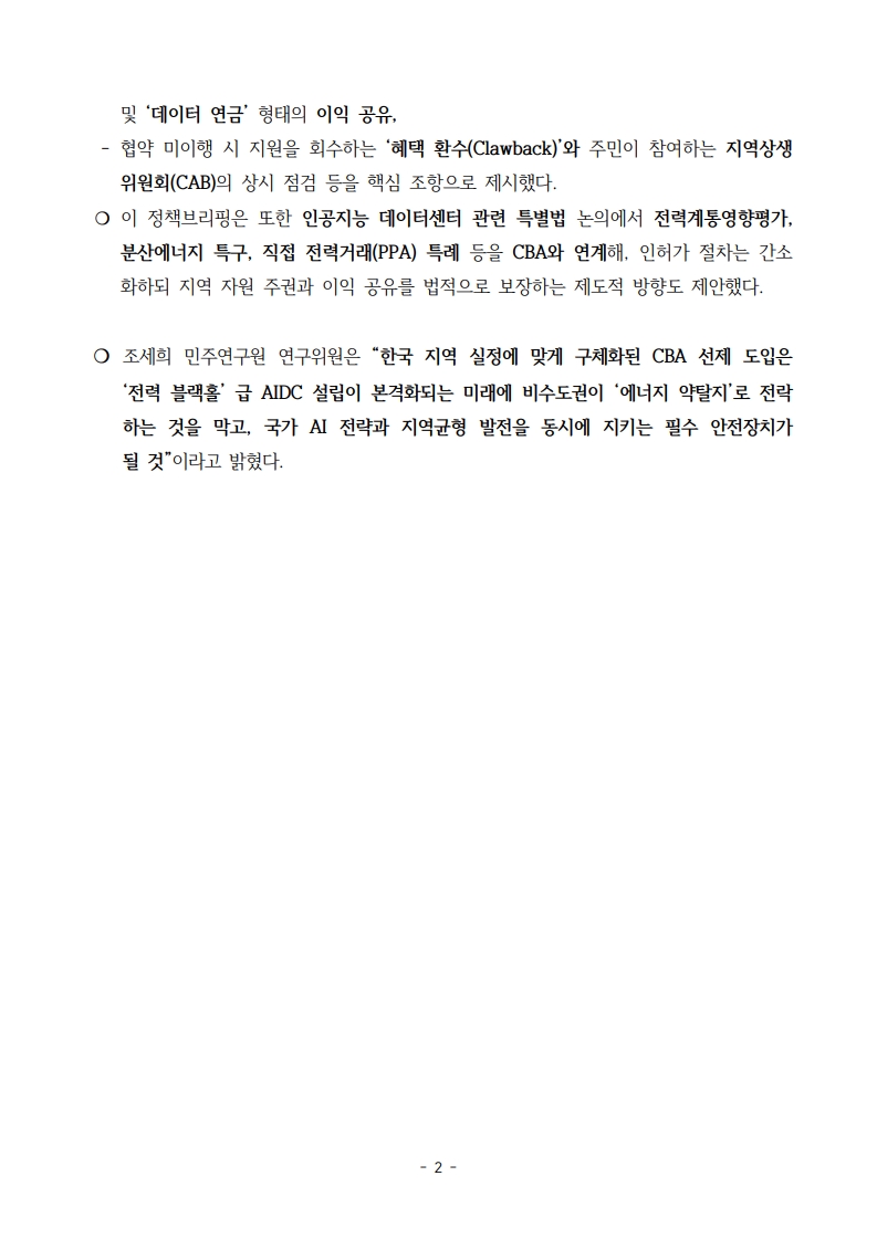 260310_민주연구원_보도자료_정책브리핑_3호_지역_상생형_AI_데이터센터_확산_방안.pdf