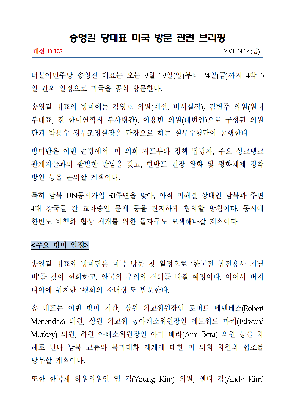 송영길_당대표_미국_방문_관련_브리핑.hwp