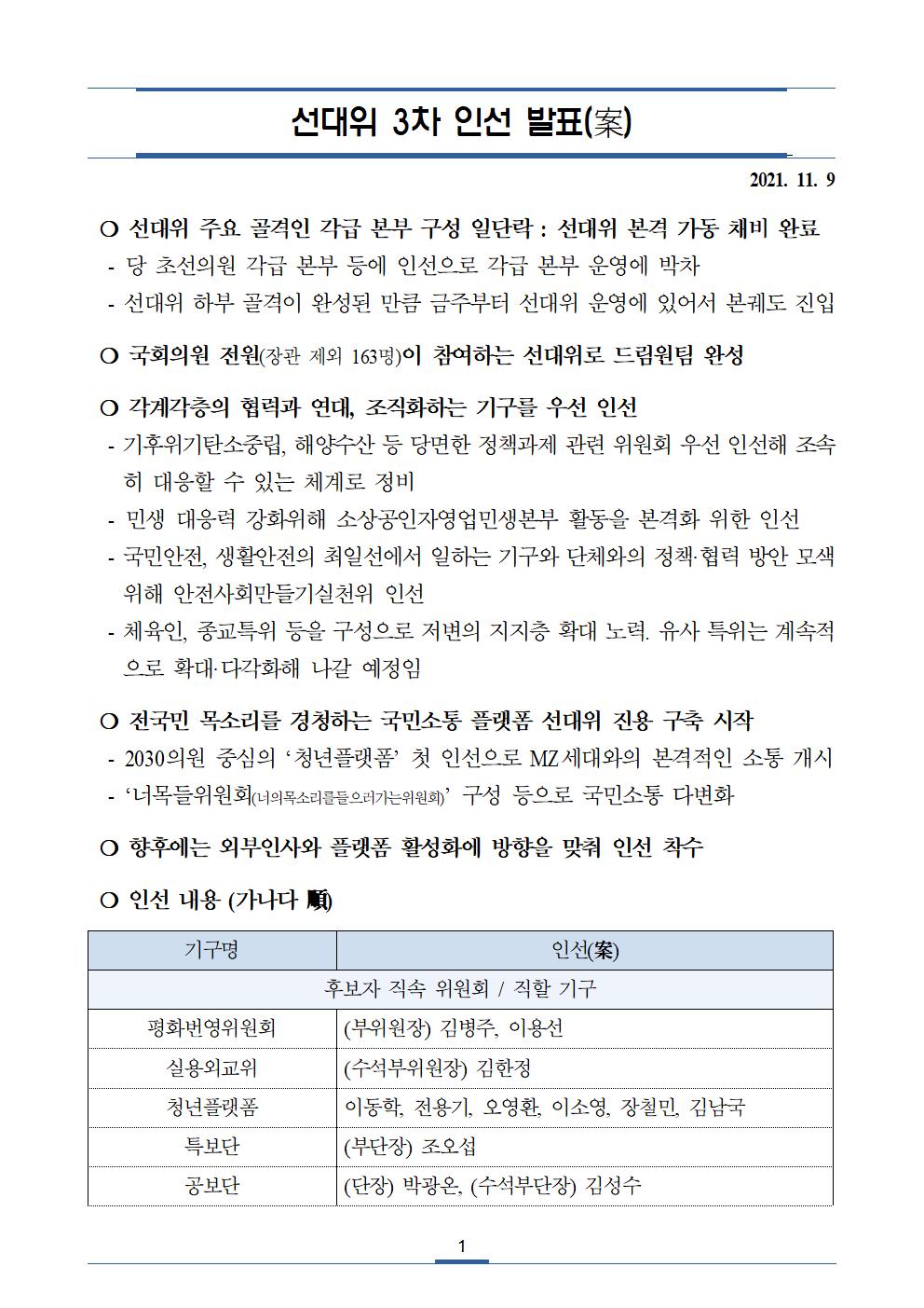 [보도자료] 더불어민주당 대한민국 대전환 제20대 대통령선거 선거대책위원회 3차 인선