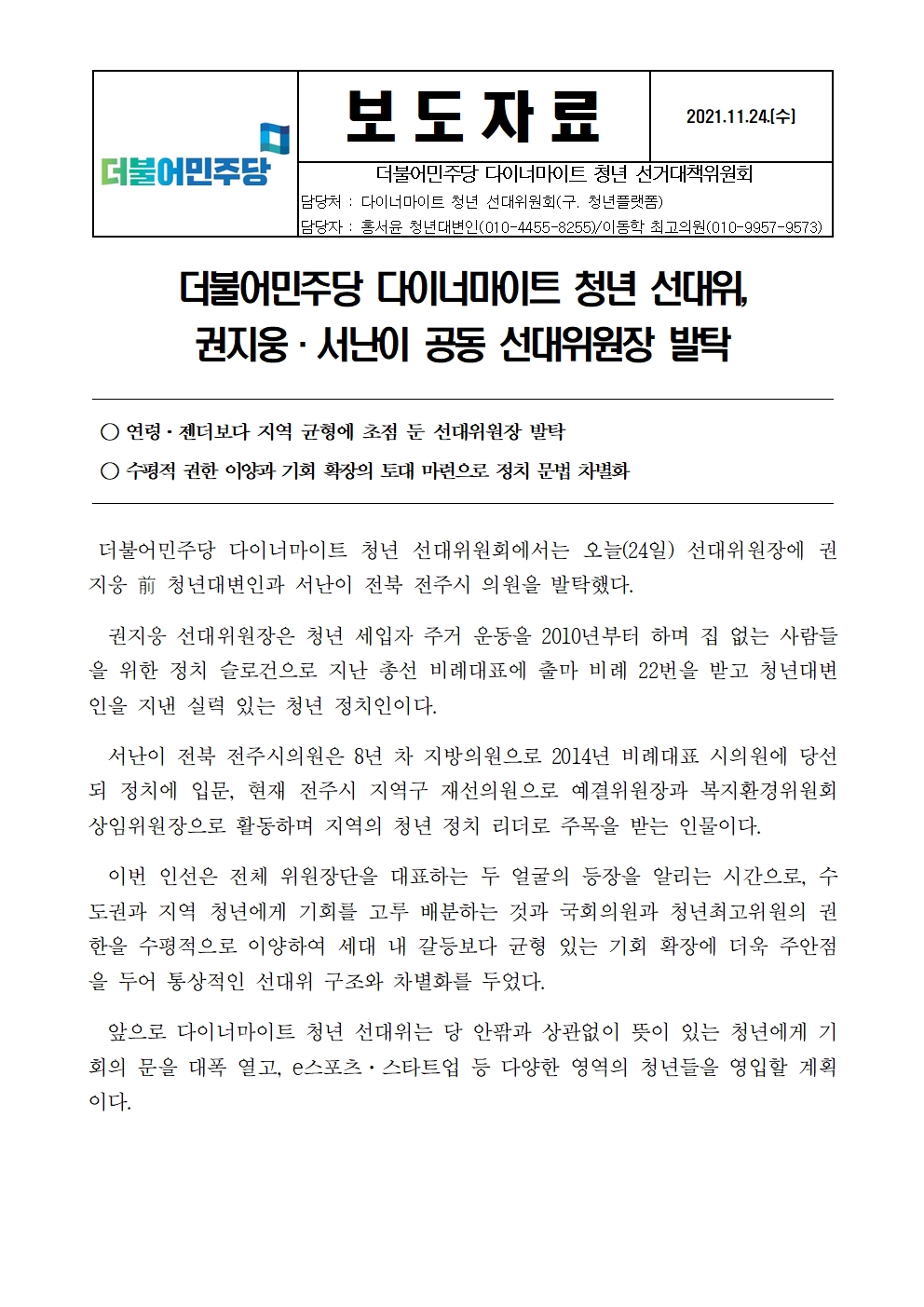 211124_더불어민주당_다이너마이트_청년선대위,_권지웅_서난이_공동선대위원장_발탁.pdf