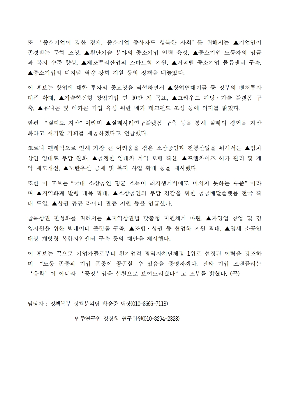 [보도자료] 이재명, “공정한 생태계 위에 상생하는 중소기업, 넘치는 기회 속에 성장하는 혁신창업” 중소기업 정책 4대 비전 제시