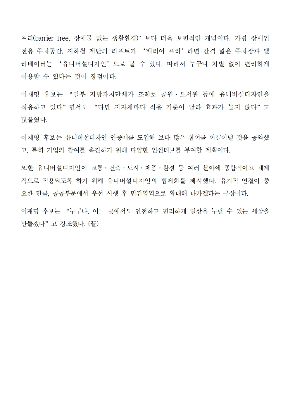 [보도자료] 더불어민주당 선대위 정책본부, '이재명의 합니다. 소확행 공약 시리즈 19' 유니버셜디자인 환경구축