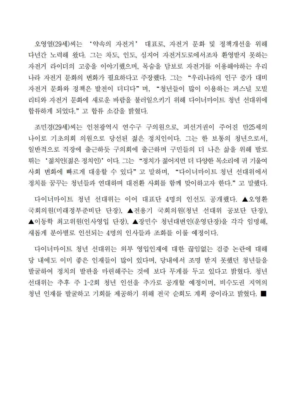 [보도자료] 더불어민주당 다이너마이트 청년선대위 1차 인선