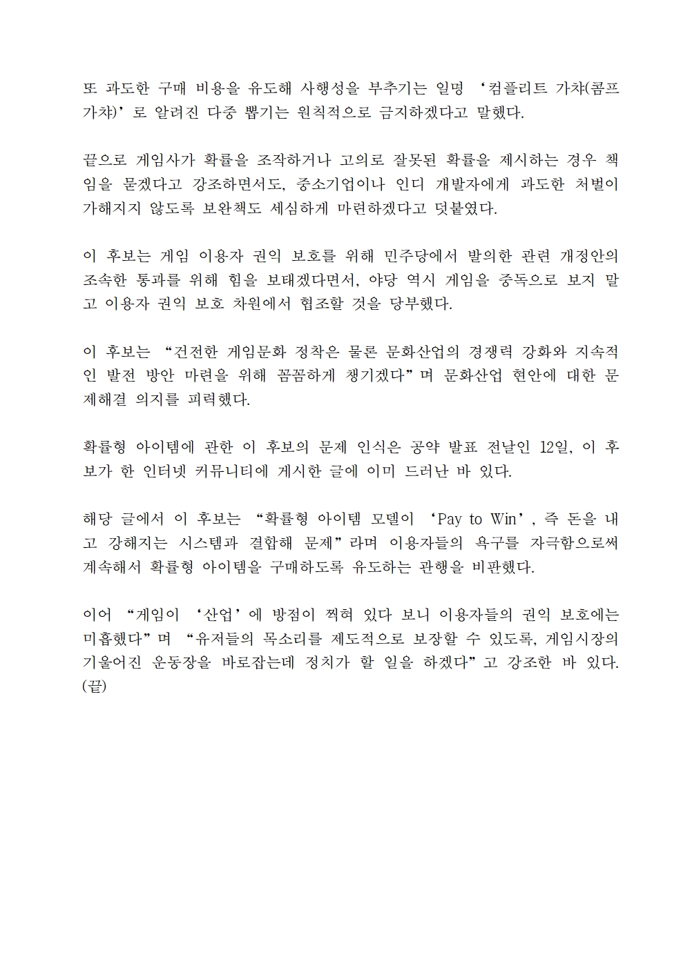 [보도자료] 더불어민주당 선대위 정책본부, '이재명의 합니다. 소확행 공약 시리즈 25' 게임 확률형 아이템 정보공개 공약