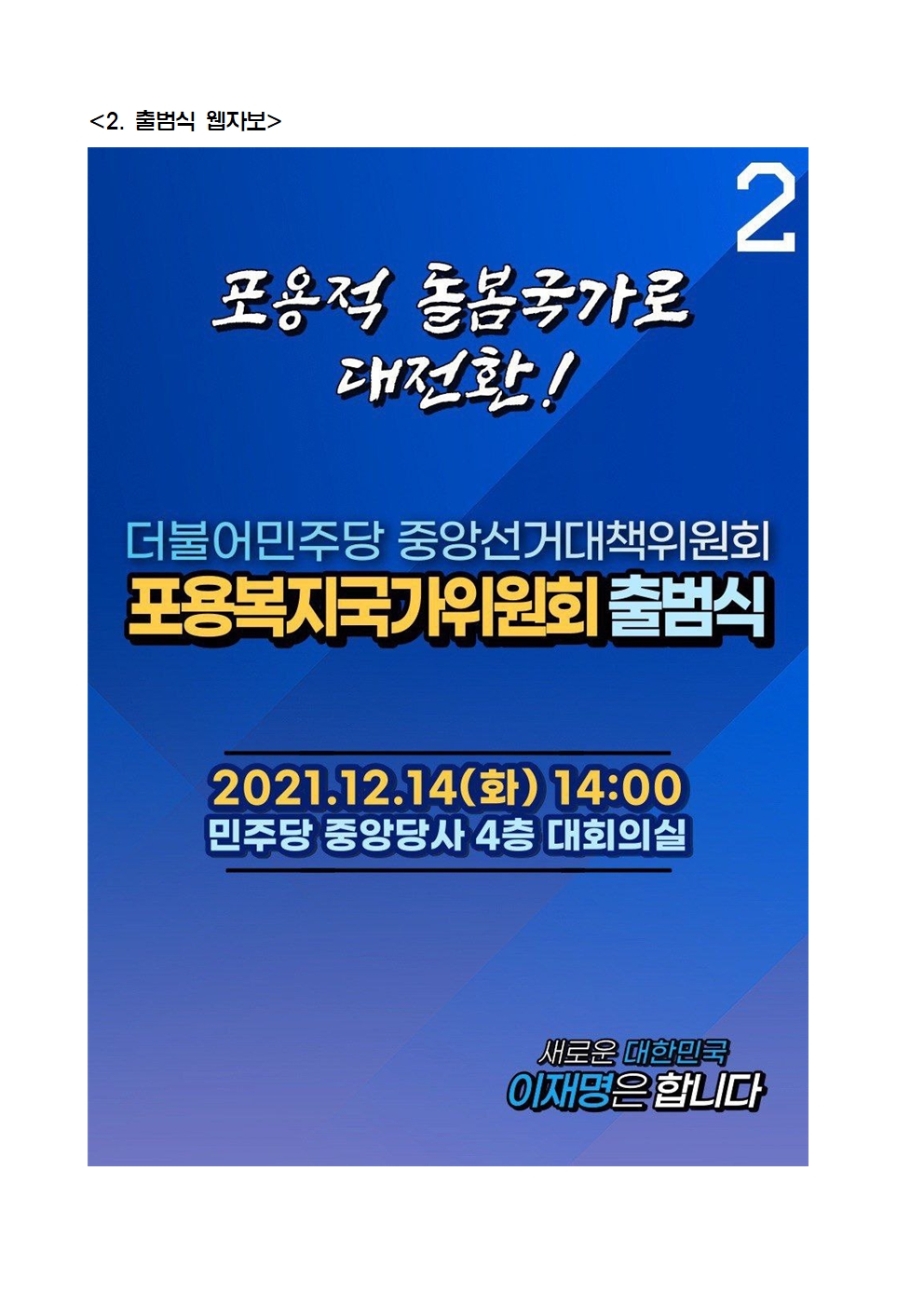 [보도자료] 더불어민주당 중앙선거대책위원회 포용복지국가위원회 출범식 개최