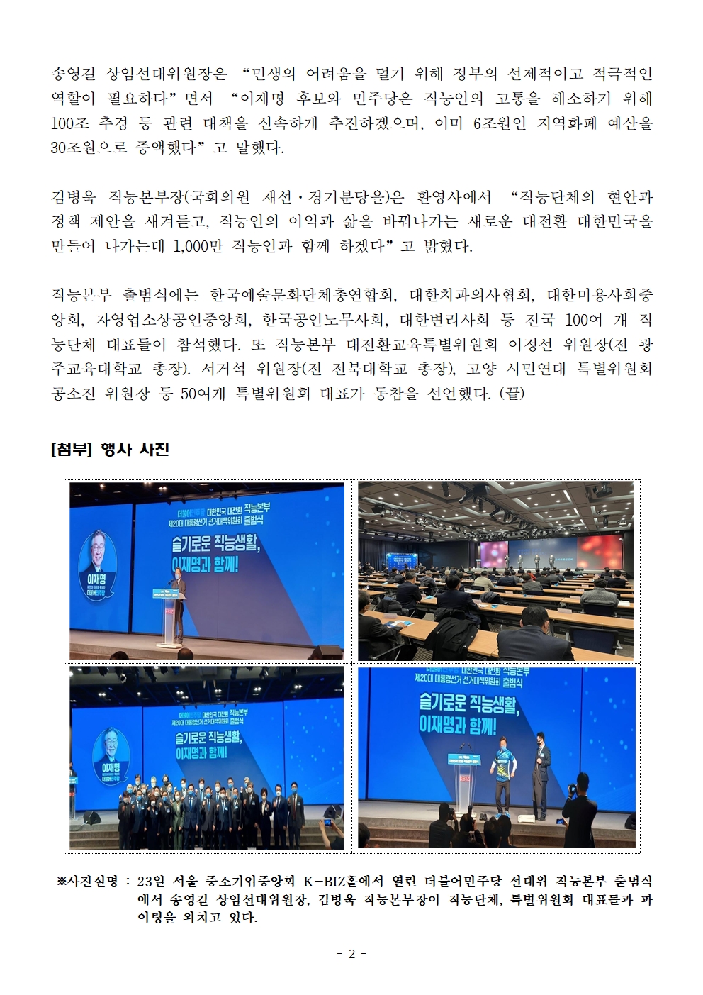 [보도자료] 더불어민주당 선대위 직능본부 출범식 개최