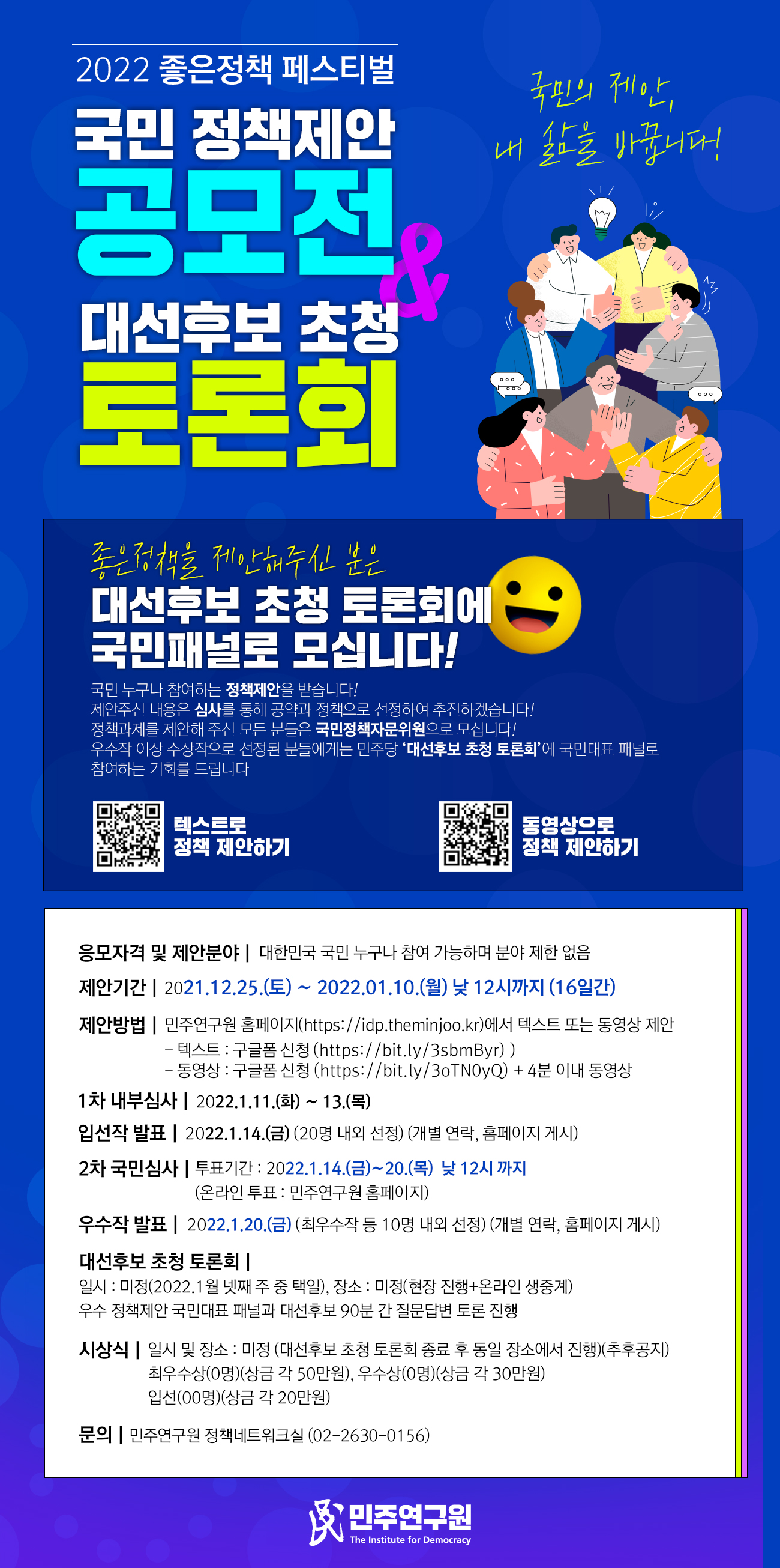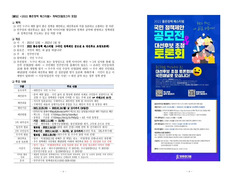 [보도자료] 더불어민주당 민주연구원, "좋은정책 제안하고, 대선후보와 토론한다!" 2022 좋은정책 페스티벌