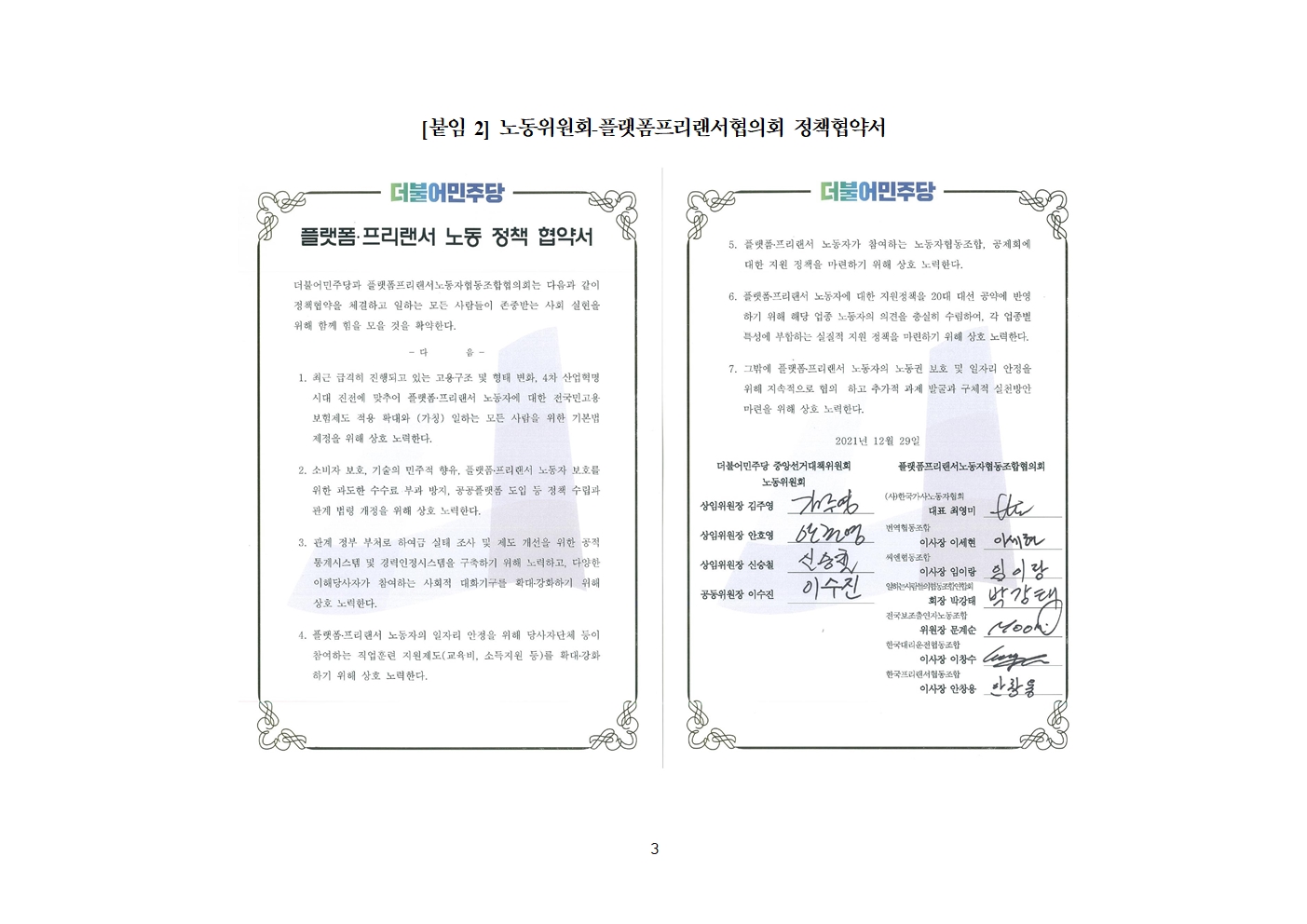 [보도자료] 더불어민주당 선대위 노동위원회, 플랫폼·프리랜서 협의회와 정책협약식 개최