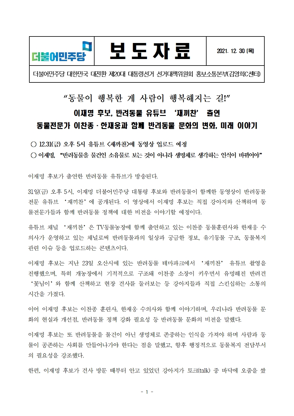 211230_보도자료_이재명_후보,_반려동물_유튜브_출연_31일_오후_5시_영상공개.pdf