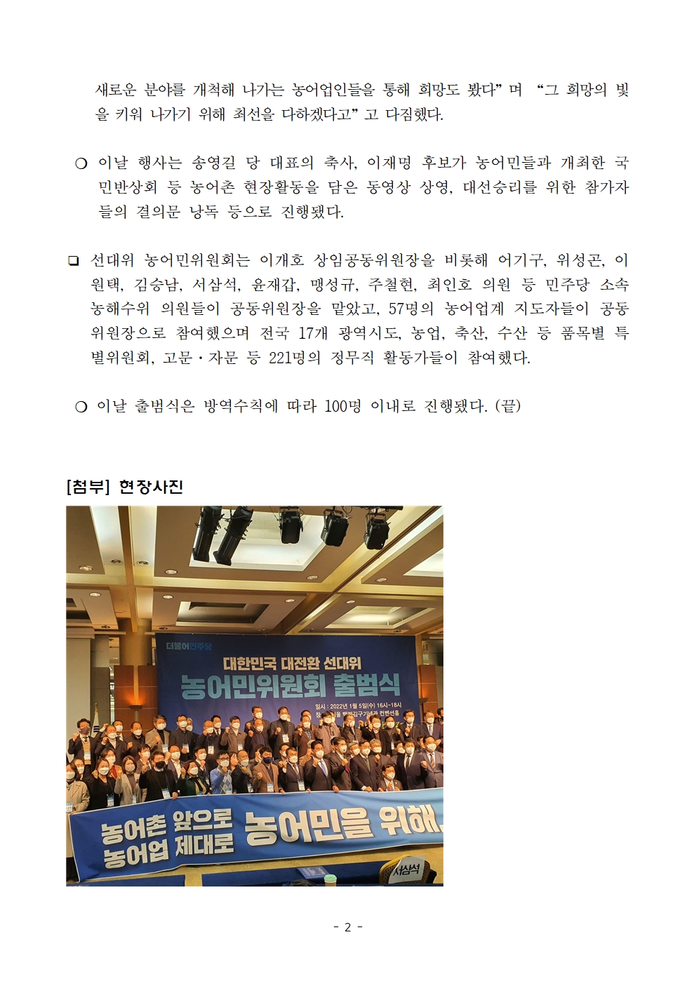 [보도자료] 더불어민주당 선대위 농어민위원회 출범