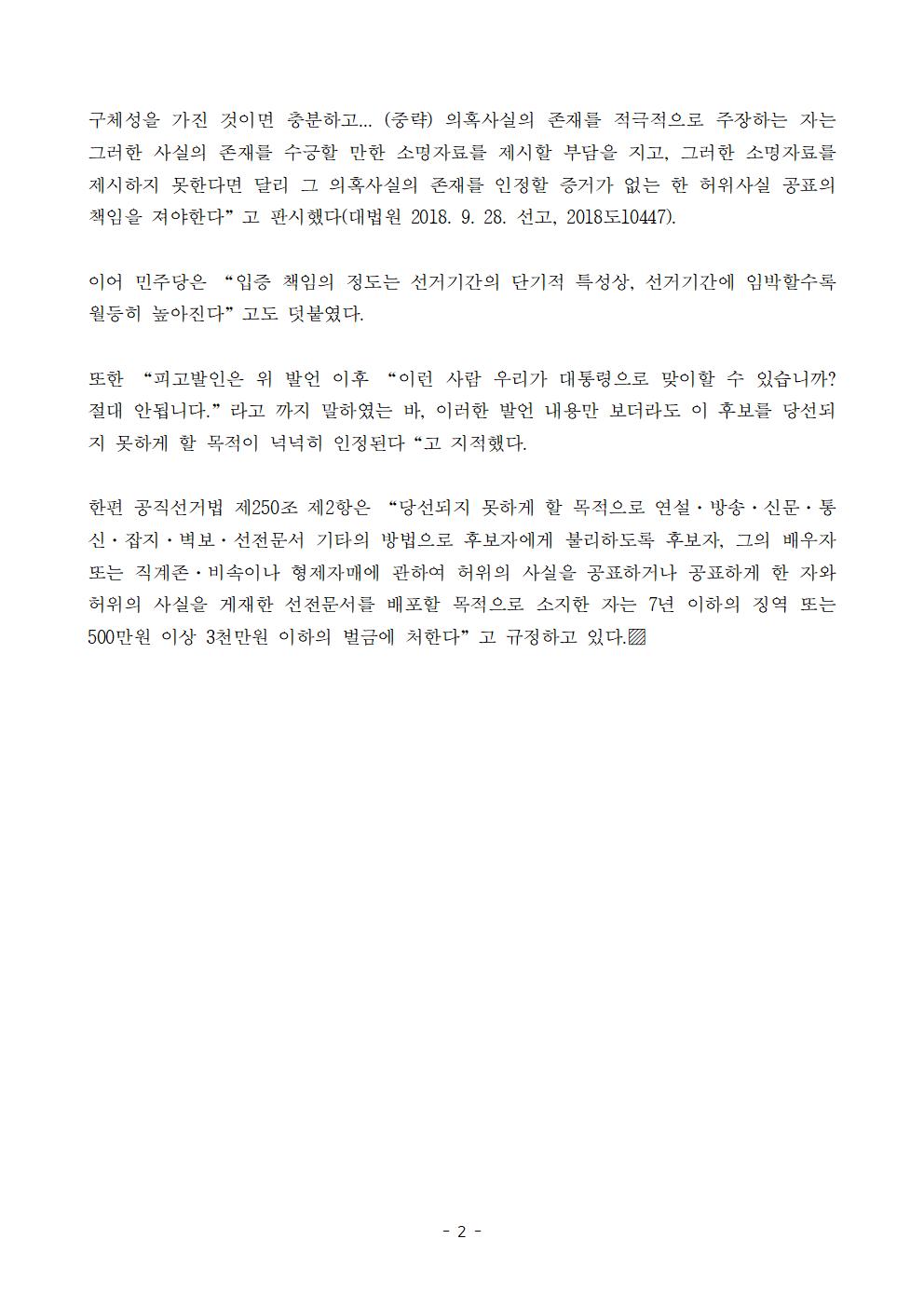 [보도자료] 더불어민주당 선대위 국민검증법률지원단 국민의힘 김정재 의원 검찰 고발