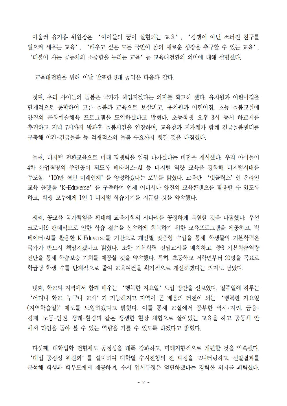 [보도자료] 더불어민주당 선대위 교육대전환위원회 공약발표