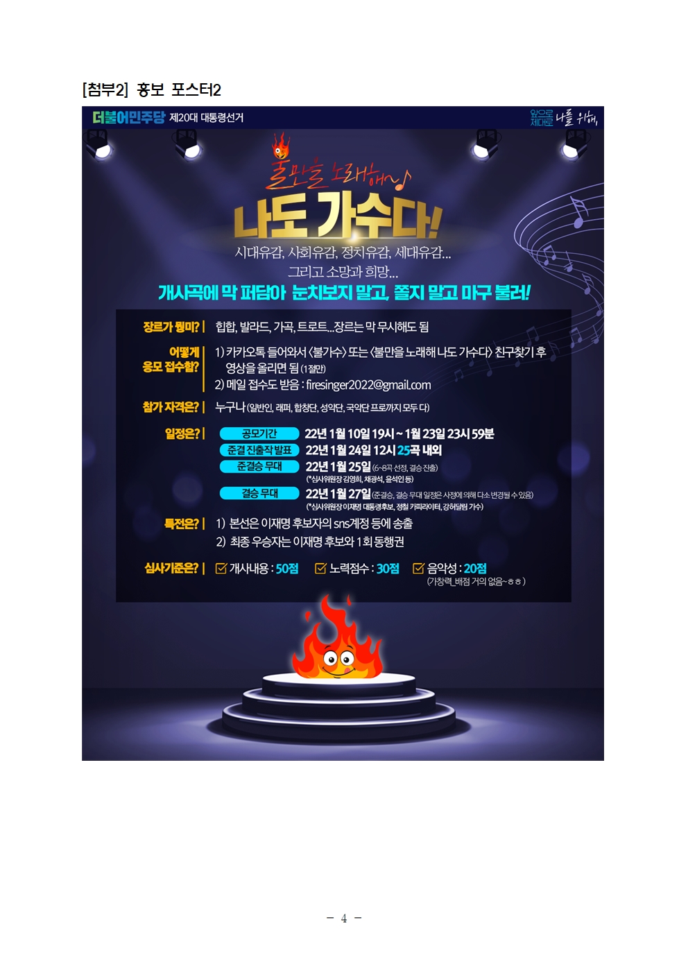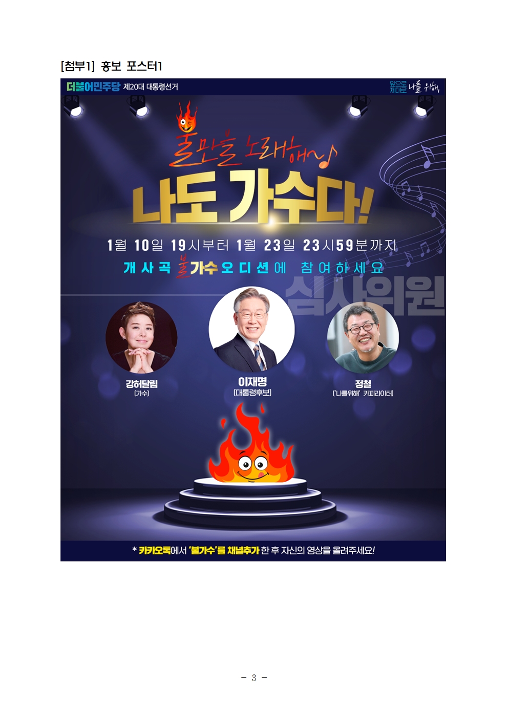 [보도자료] 더불어민주당 선대위 홍보소통본부, ‘불만을 노래해!! 나도 가수다’ 공모 진행