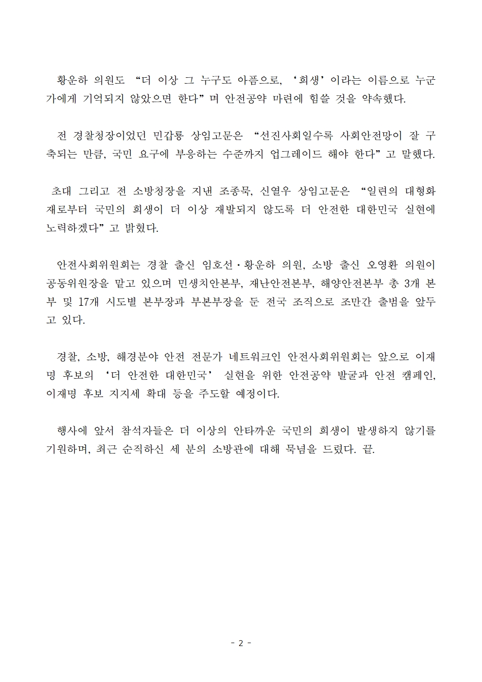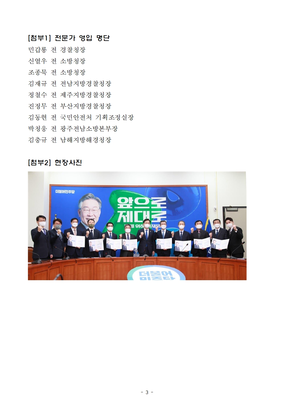 [보도자료] 더불어민주당 선대위 안전사회위원회, 경찰·소방·해경 안전분야 최고전문가 영입