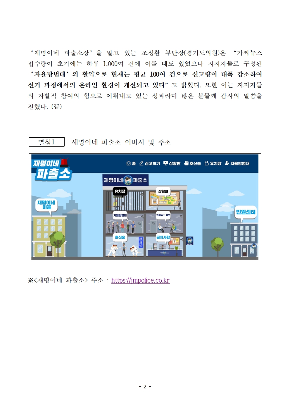 [보도자료] 더불어민주당 선대위 온라인소통단, 가짜뉴스 근절과 클린 선거 위한 '재명이네 파출소' 개소