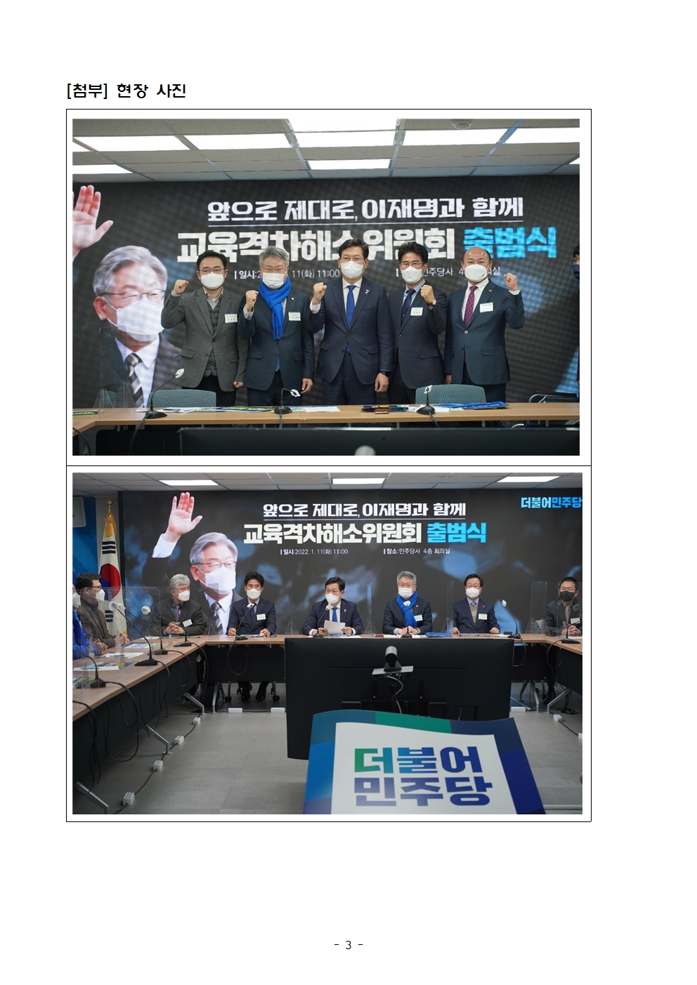 [보도자료] 더불어민주당 선대위 교육격차해소위원회 출범식 개최