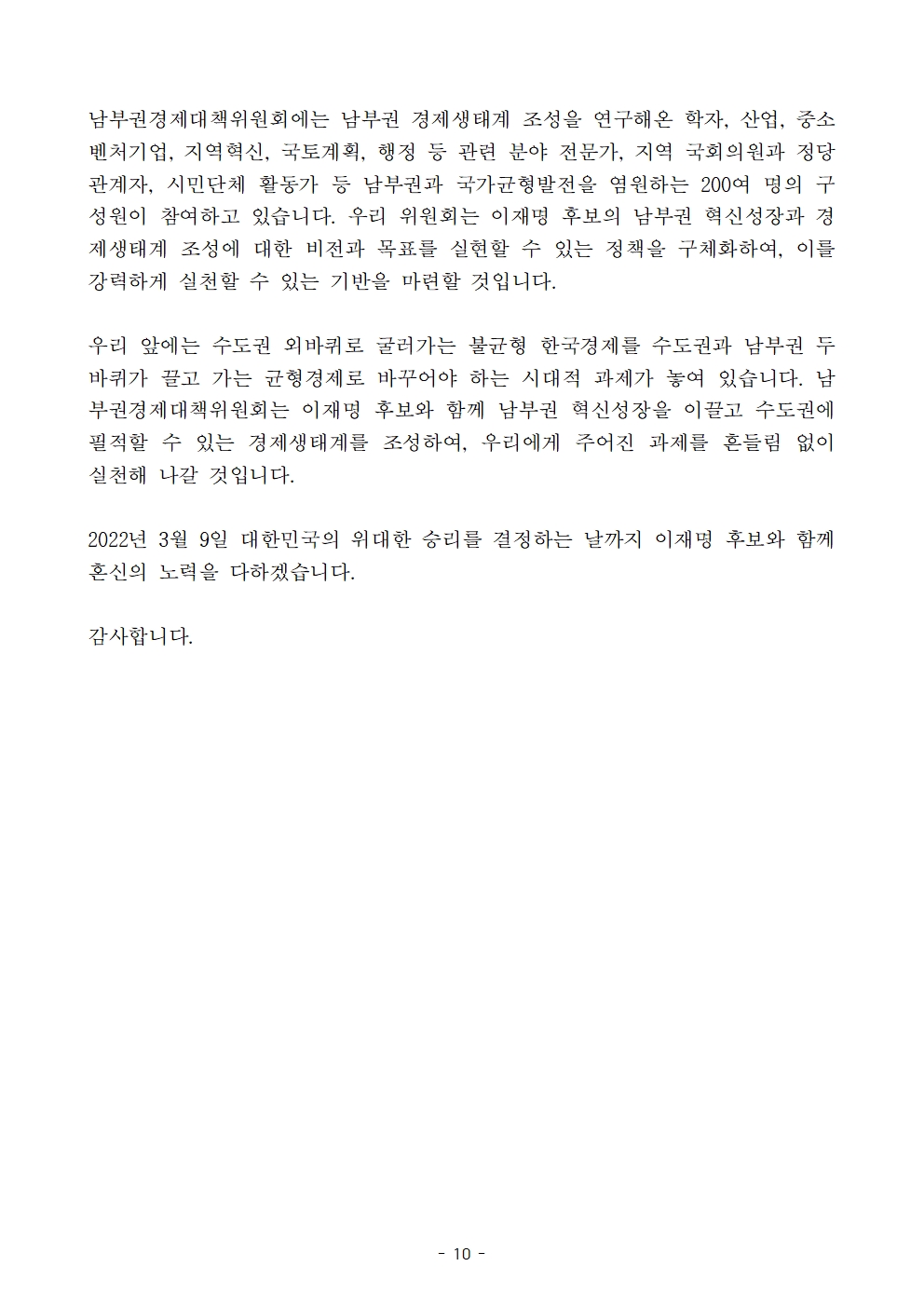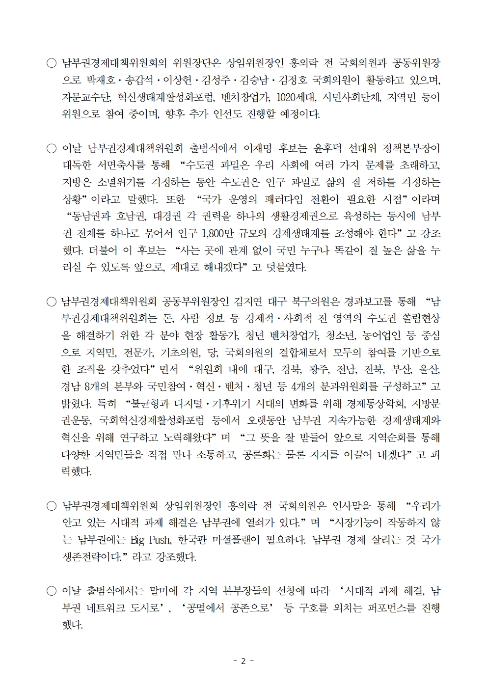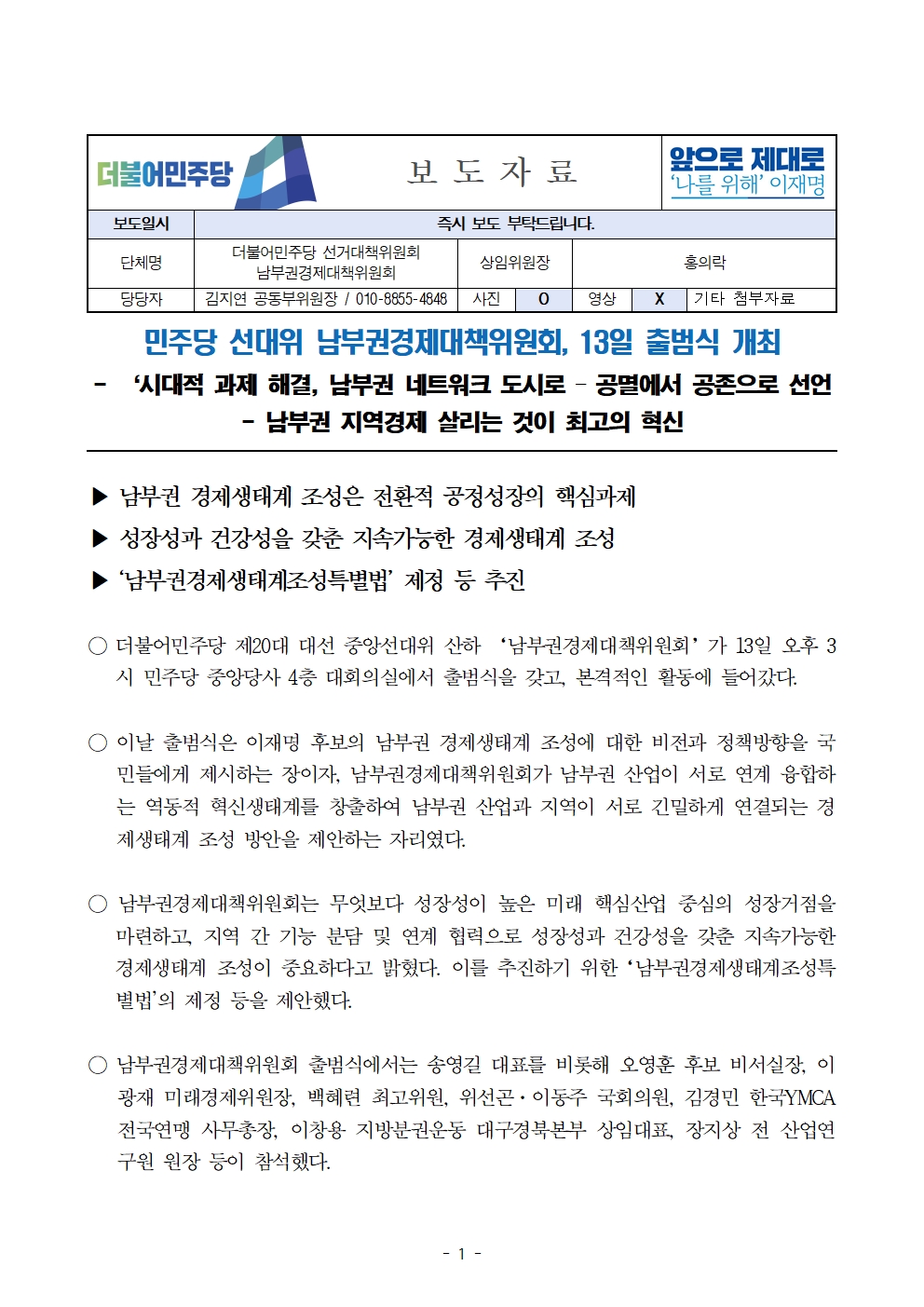 [보도자료] 더불어민주당 선대위 남부권경제대책위원회 출범식 개최