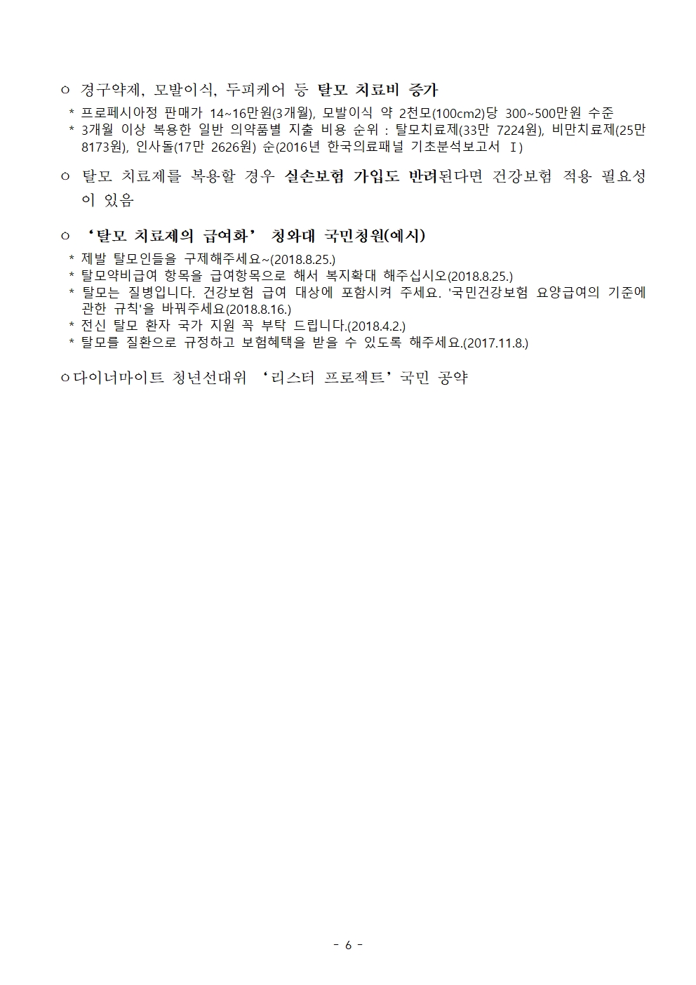 [보도자료] 더불어민주당 선대위 정책본부, '이재명은 합니다. 소확행 공약 시리즈 46' 탈모치료 건강보험 적용 확대 공약
