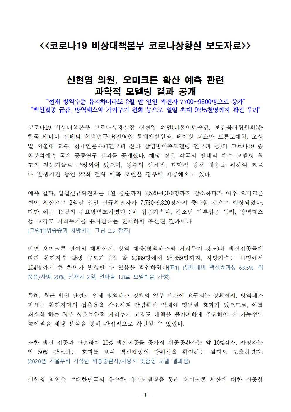 220116_보도자료_신현영_의원_오미크론_확산예측_관련_과학적_모델링_결과_공개_최종3.hwp