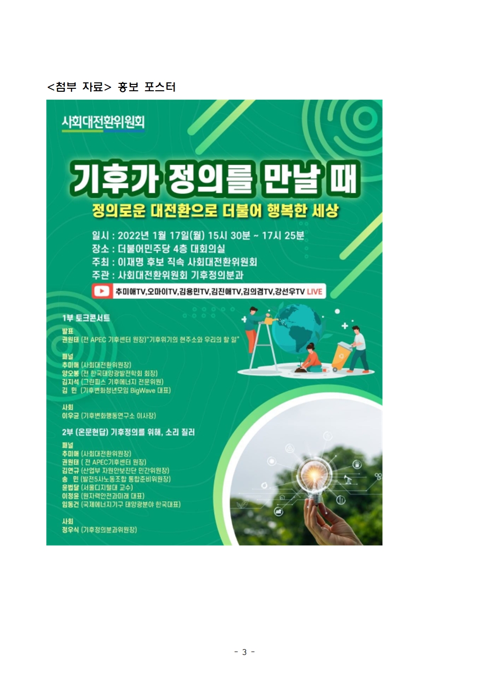 [보도자료] 더불어민주당 선대위 사회대전환위원회, 기후정의 콘서트 개최
