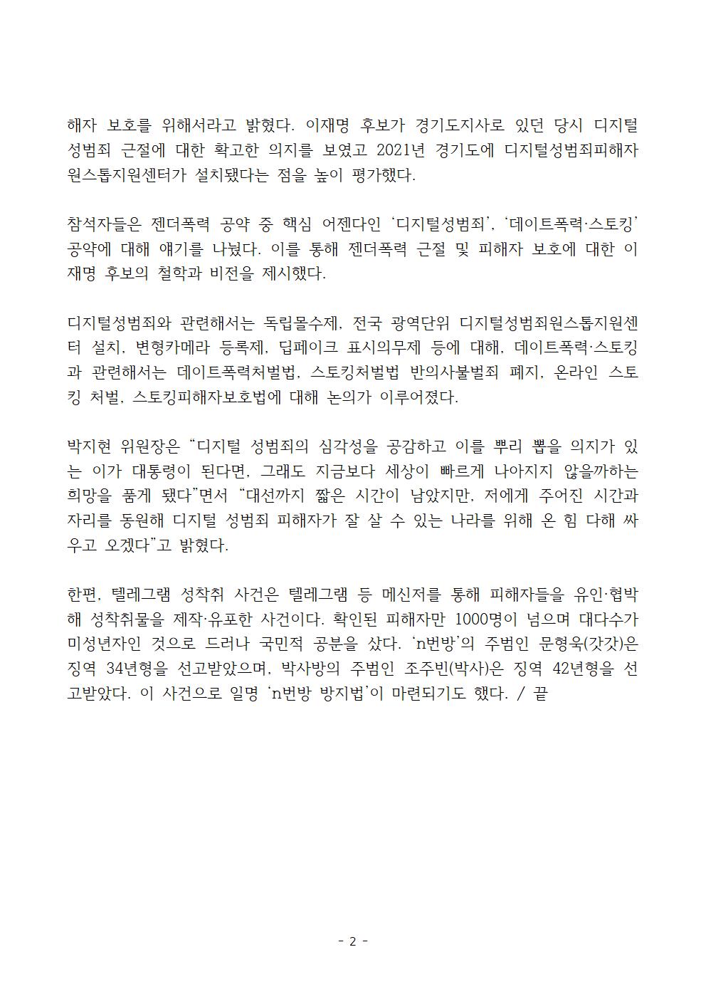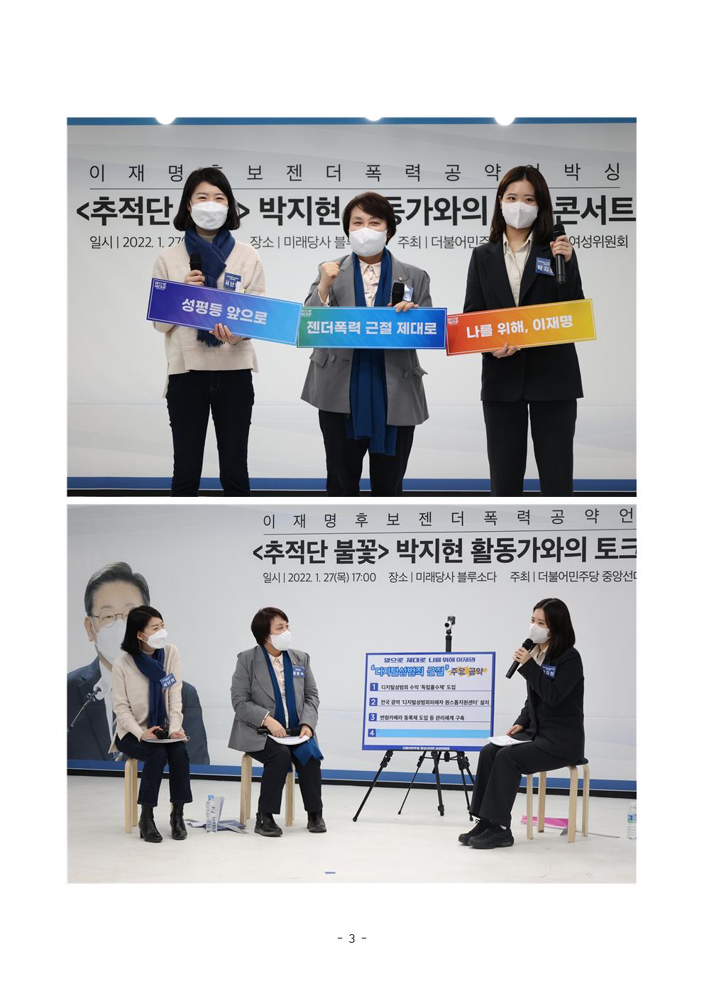 [보도자료] 더불어민주당 선대위 여성위원회 젠더폭력공약 언박싱 토크콘서트 개회