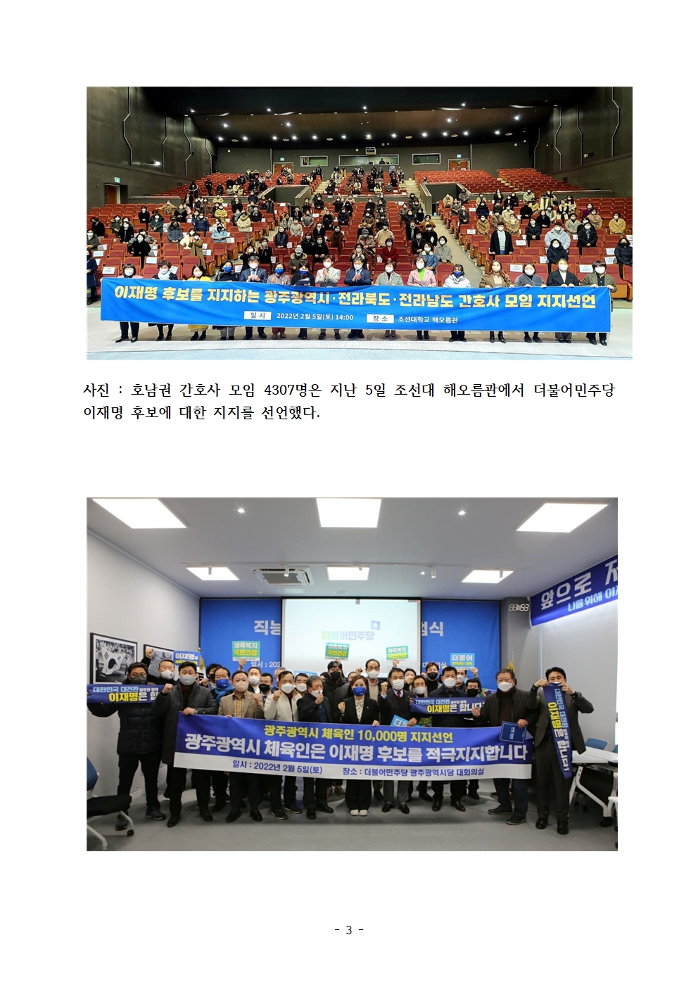 [보도자료] 더불어민주당 선대위 직능본부, 호남 체육인, 간호사, 외식업 등 대규모 지지 선언