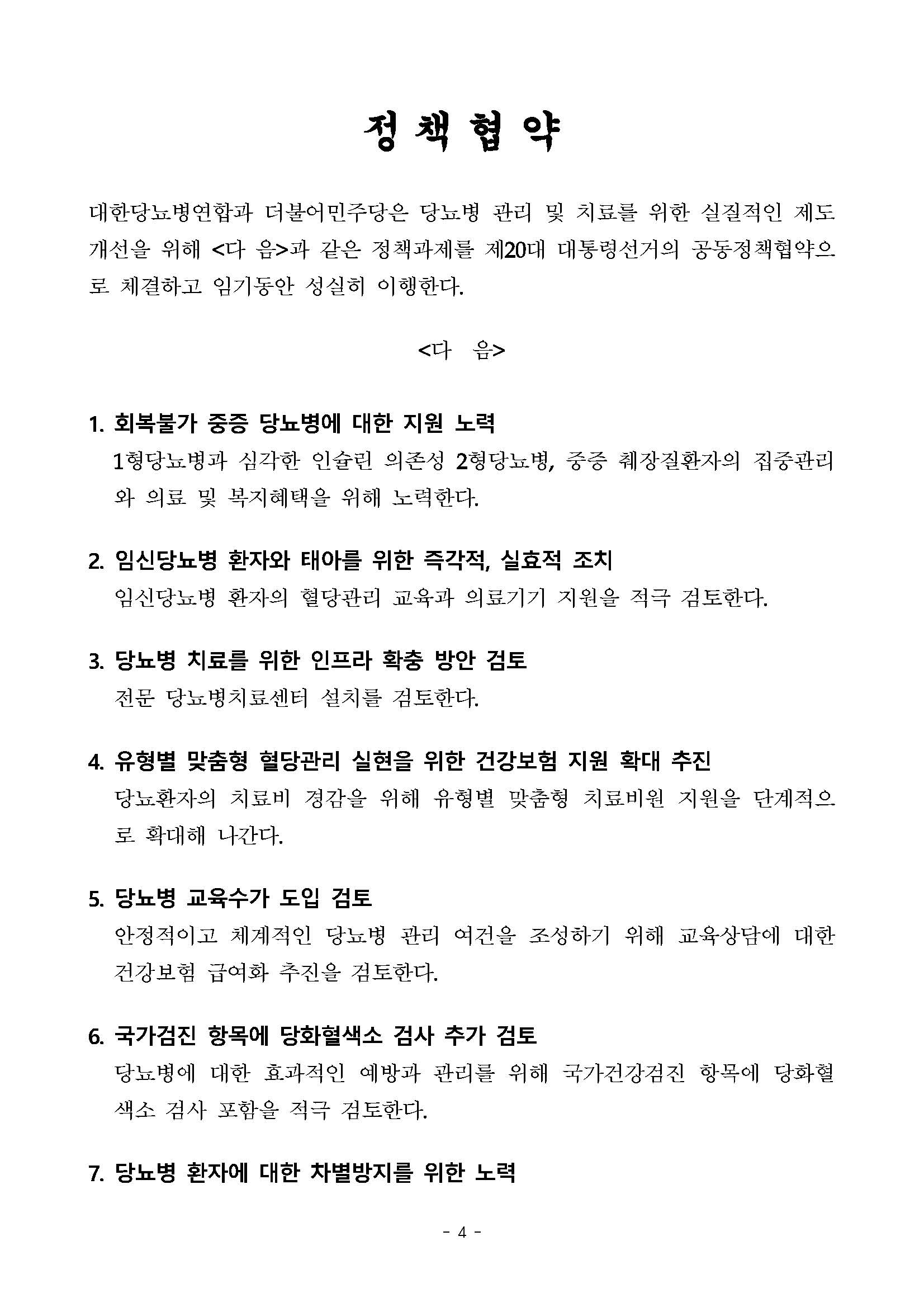 [보도자료] 더불어민주당 민주연구원, 당뇨병 10대 정책협약식 개최