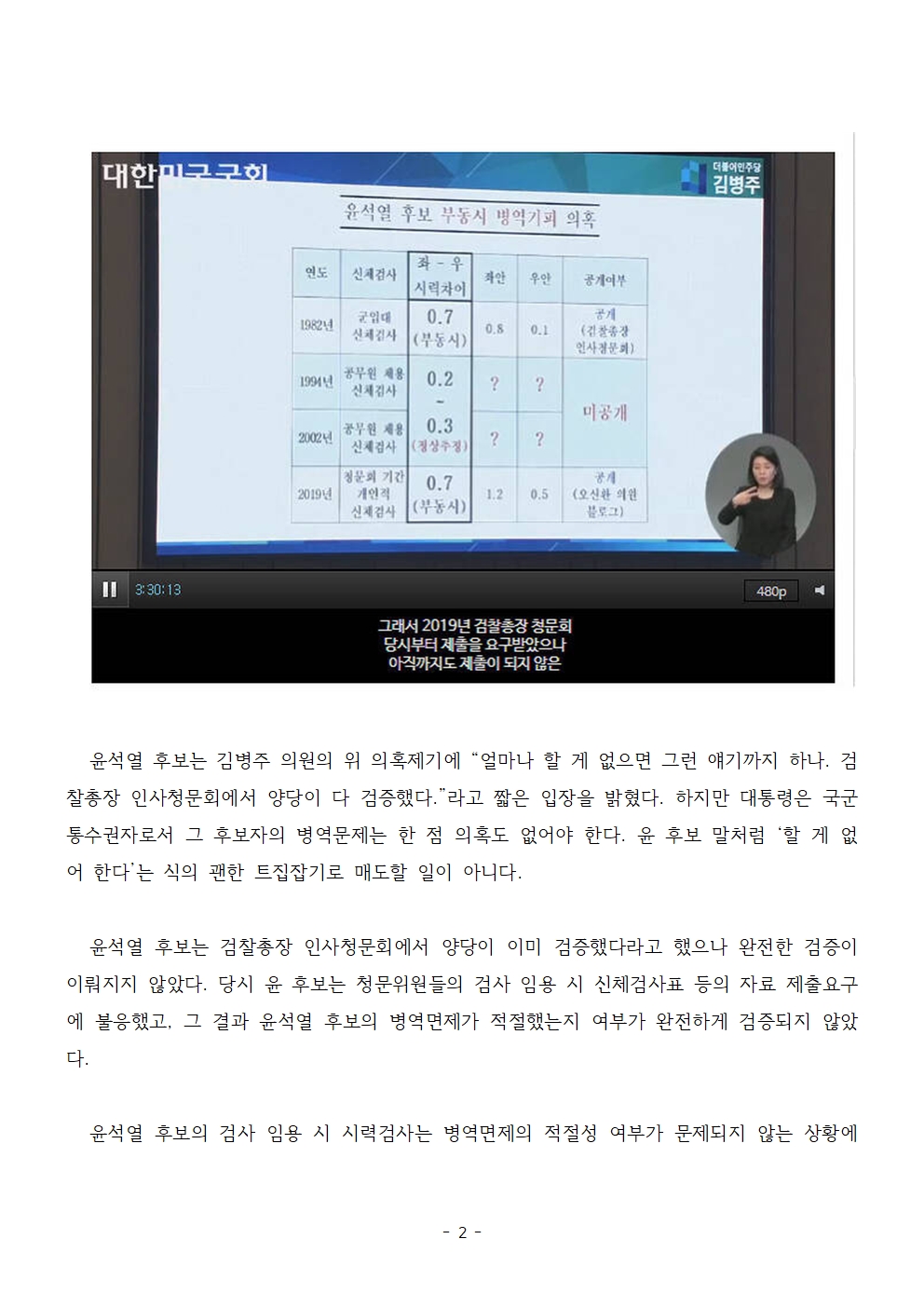 [보도자료] 더불어민주당 선대위 국민검증법률지원단, 윤석열 후보 부동시 군 면제 의혹 규명 위한 검사 임용 시 신체검사표 등 정보공개청구